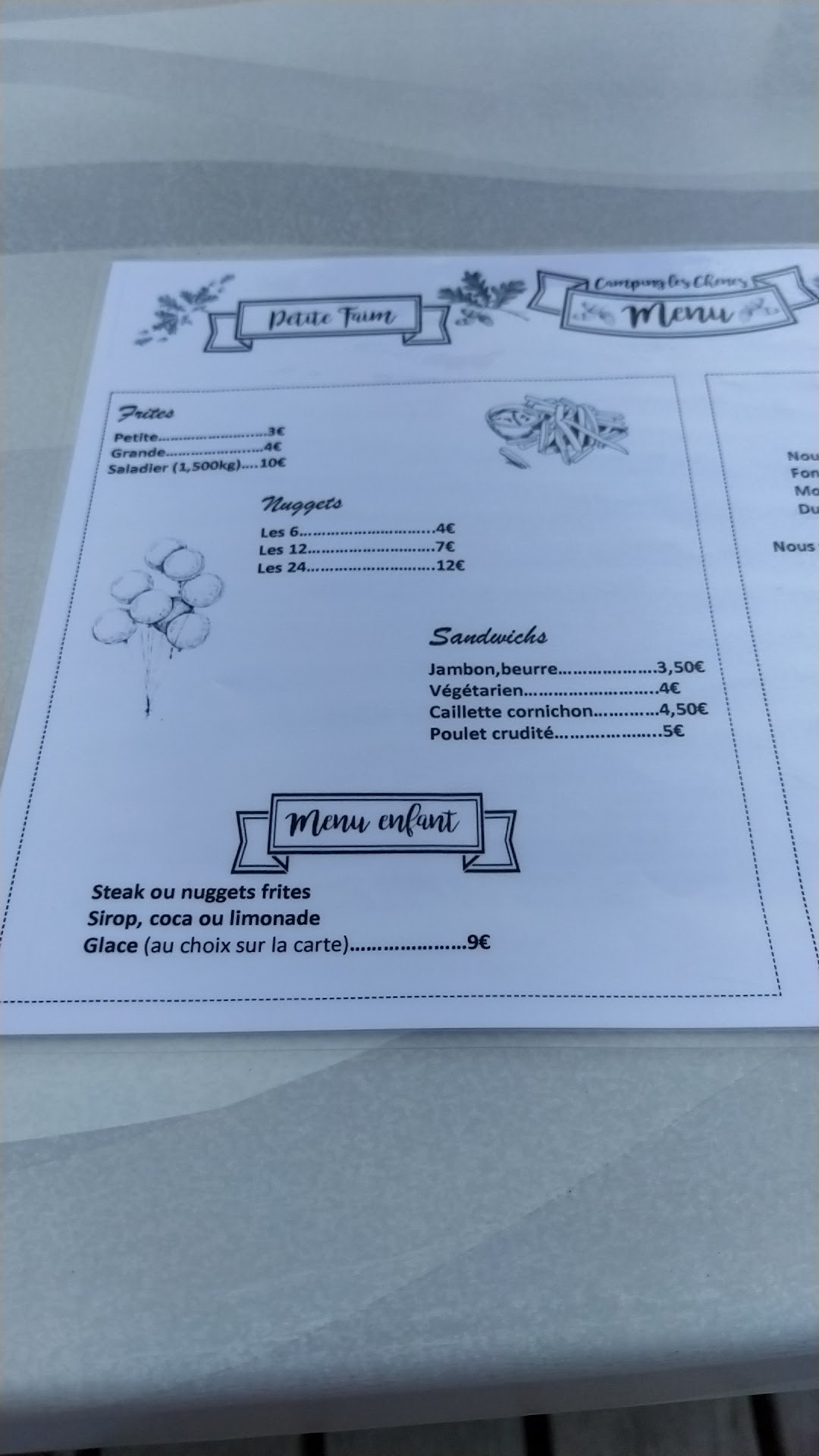 Tout est super bon au camping des. Chênes ( des pizzas en passant par les salades....) N'hésitez pas à goûter tous ces bons petits plats tout ça dans une super ambiance et dans la simplicité. Coup de cœur pour le mojito framboise au rayon bar.