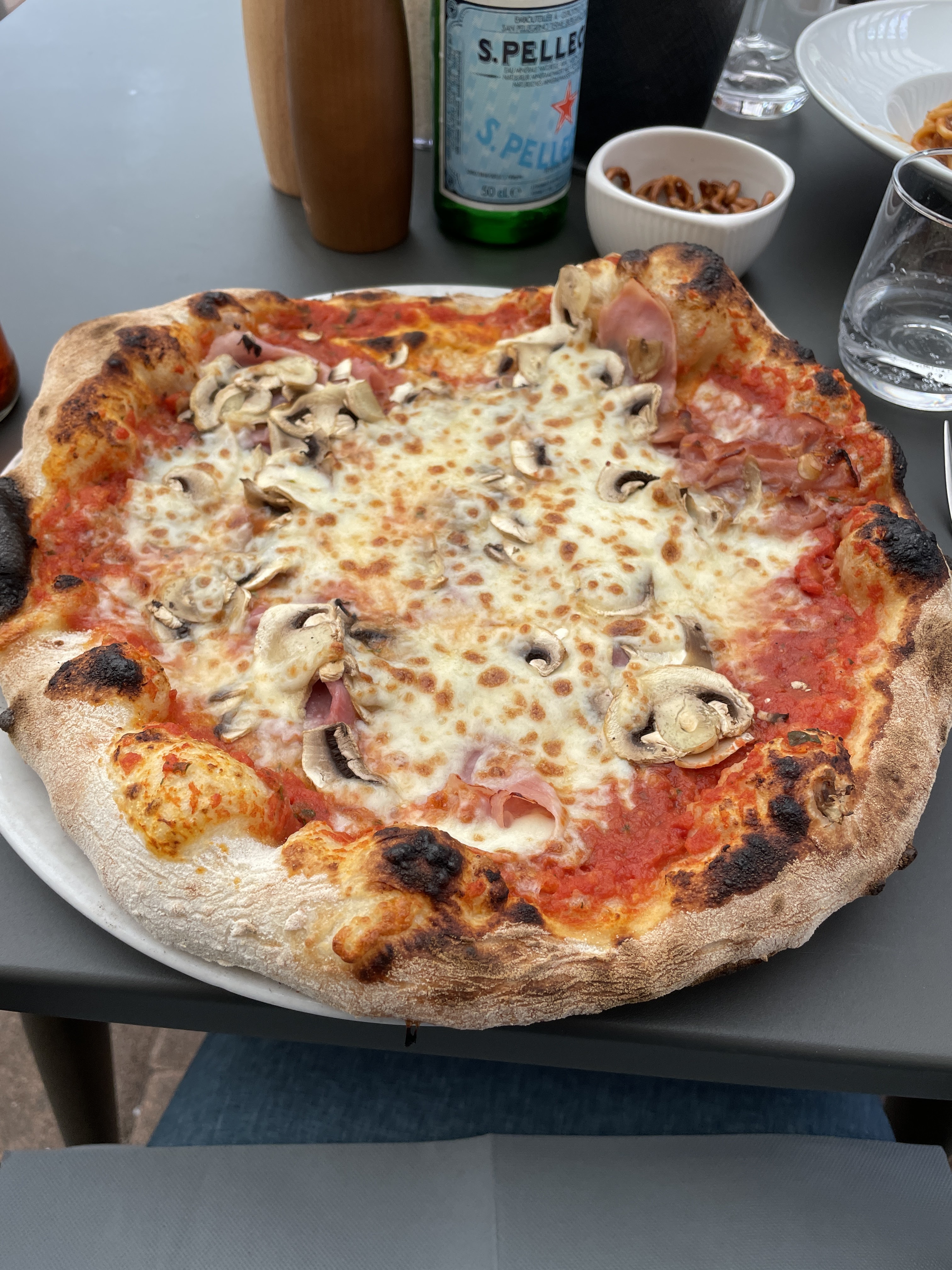 Après avoir un peu patienté à l’entrée (ils fonctionnement sur placement),nous avons mangé dans leur véranda extérieure,sans charme particulier,un effort de décoration pourrait y être amené,le fourbi de fond de salle faisait un peu pitié à vrai dire. Ceçi étant dit, je venais pour leur pizza et objectivement c’était du tout bon, une bonne pâte à pain cuite dans les règles de l’art et une garniture assez qualitative (fruits de mer pour ma part).Addition correcte.