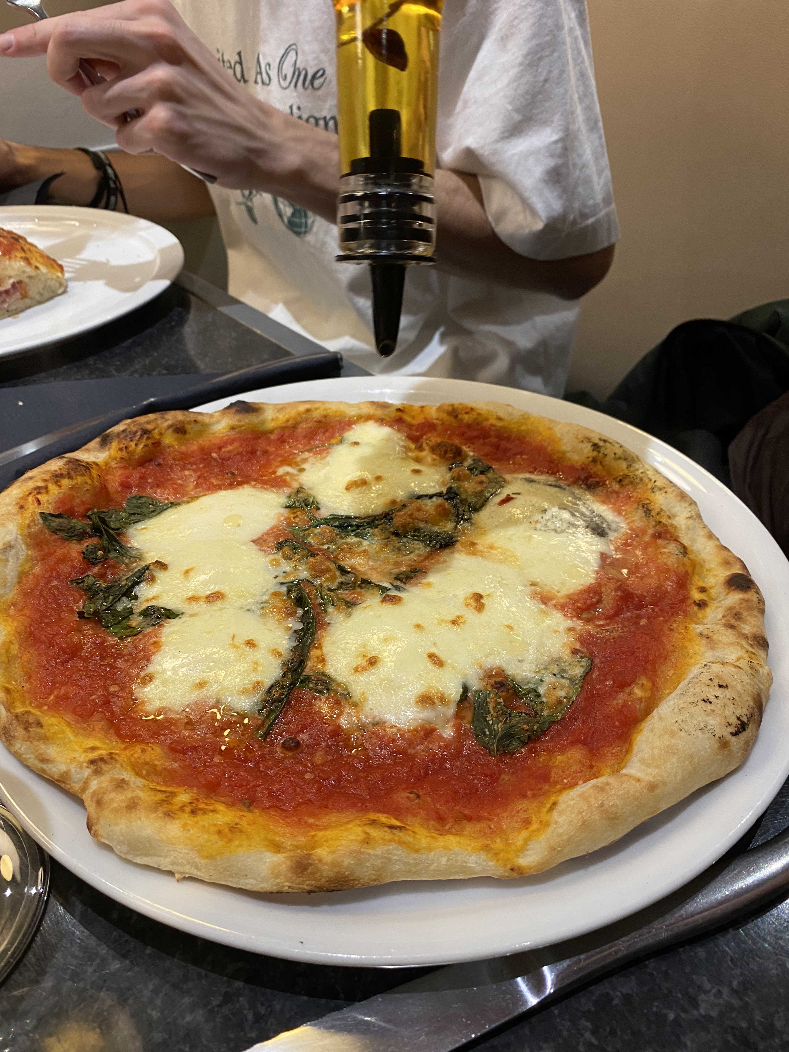 Des pizzas incroyables et un personnel si adorable, ils étaient vraiment serviables et gentils. Les places assises à l'extérieur étaient confortables dans la brise fraîche d'automne du mois de septembre. J'adore aussi leur huile d'olive au piment.
