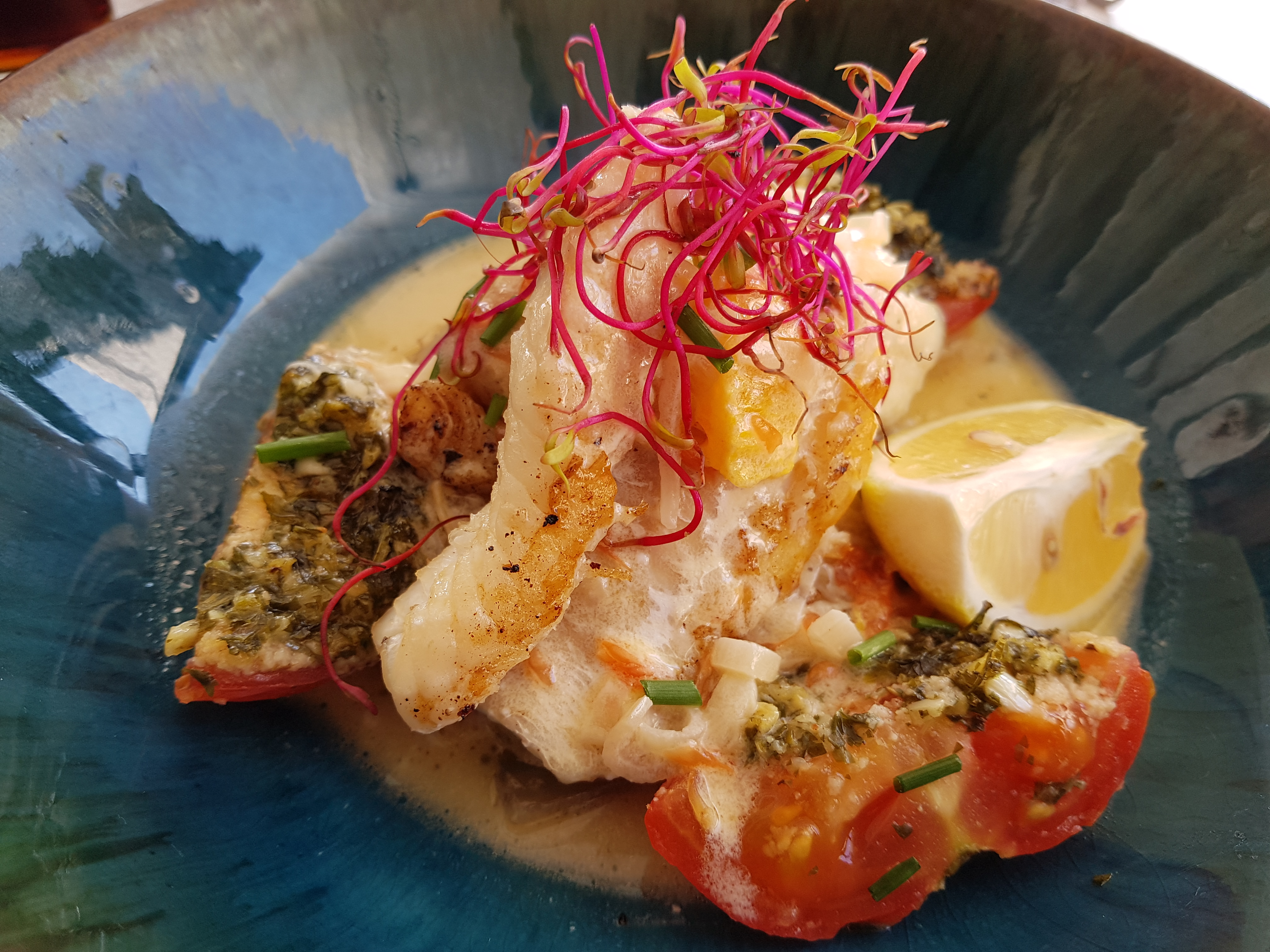 Pour l'entrée :st jacques épinards. A éviter.quantité 3 cuillères a soupe .servi froid. Filet de poisson plein d'arêtes .la serveuse nous a dis il faut le dire aux pêcheurs c'est eux qui nous le livre comme ça !!normalement aux amandes.4 amandes avec un mélange d'oignons. Tiramisu café :un boudoir pas tout a fait imbibé,avec du café très mauvais .dessus le mascarpone recouvert de cacao. Je suis hyper gourmande La première fois que je mange un désert aussi mauvais .ma soeur a pris un fraisier sérieux fait maison ? De la confiture de fraise et dessus en décor une fraise a moitié. J'avais l'habitude d'y aller .je sais pas ce qui c'est passé,fini j'y vais plus .de plus la serveuse vraiment pas aimable.