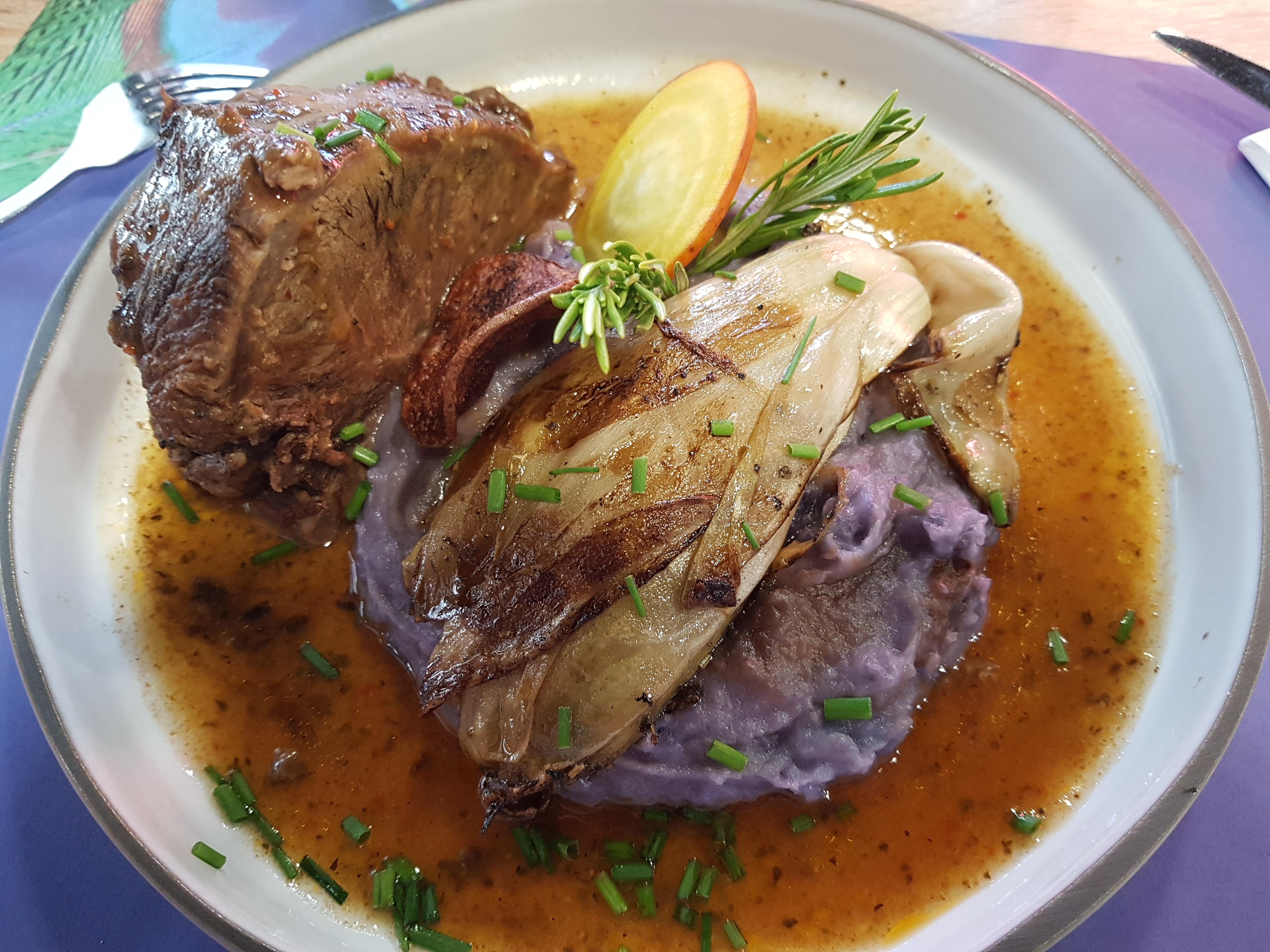 Plat copieux, personnel agréable. Seuls bémols, salade non assaisonnée, avons du attendre pour un peu de vinaigrette et nous avons fait tout le repas sans eau, malgré notre demande ( le personnel m'a sans doute prise pour un chameau lol).