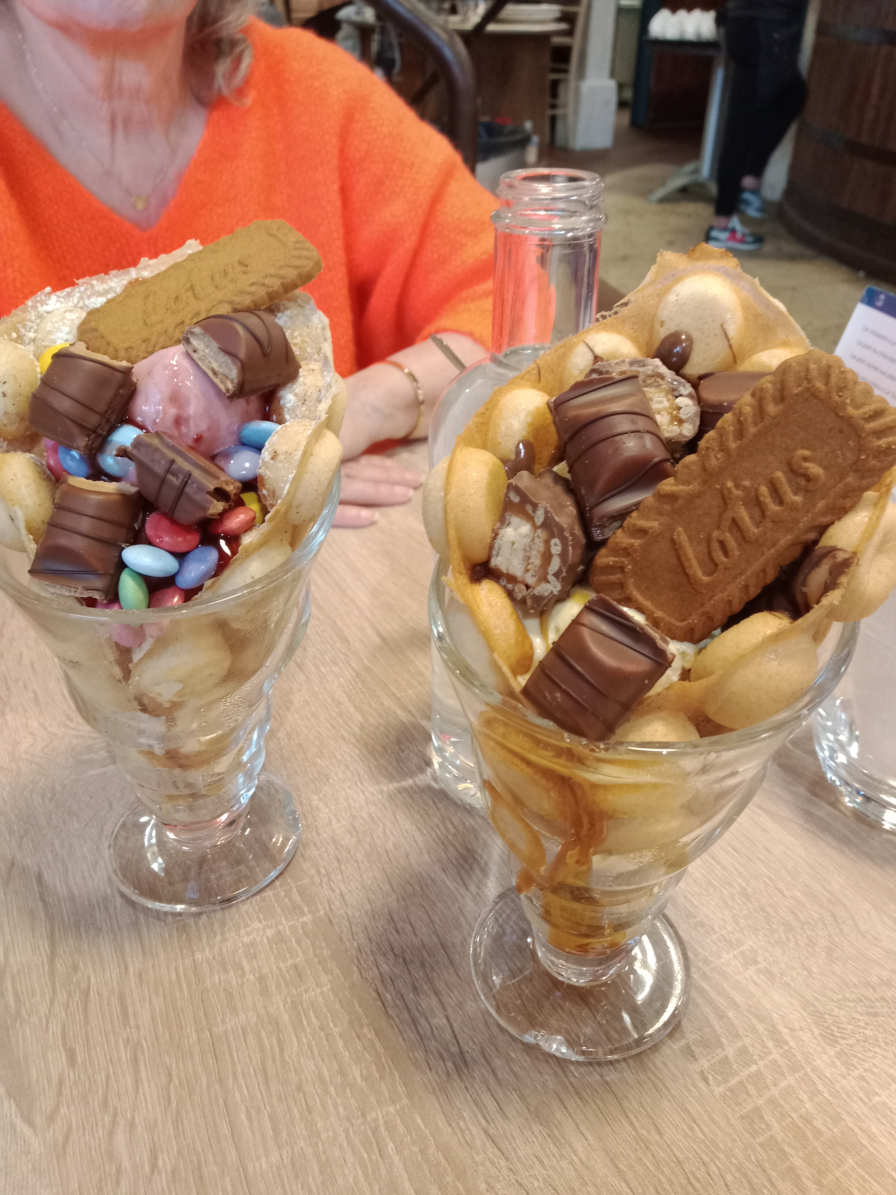J'avais demander une gaufre kinder bueno on me met des shocobons. Serveuse cheveux court aussi aimable et compréhensible qu'une porte Chantilly pas fraîche Bonne gaufres surgelée cependant Bonne glace spéculos
