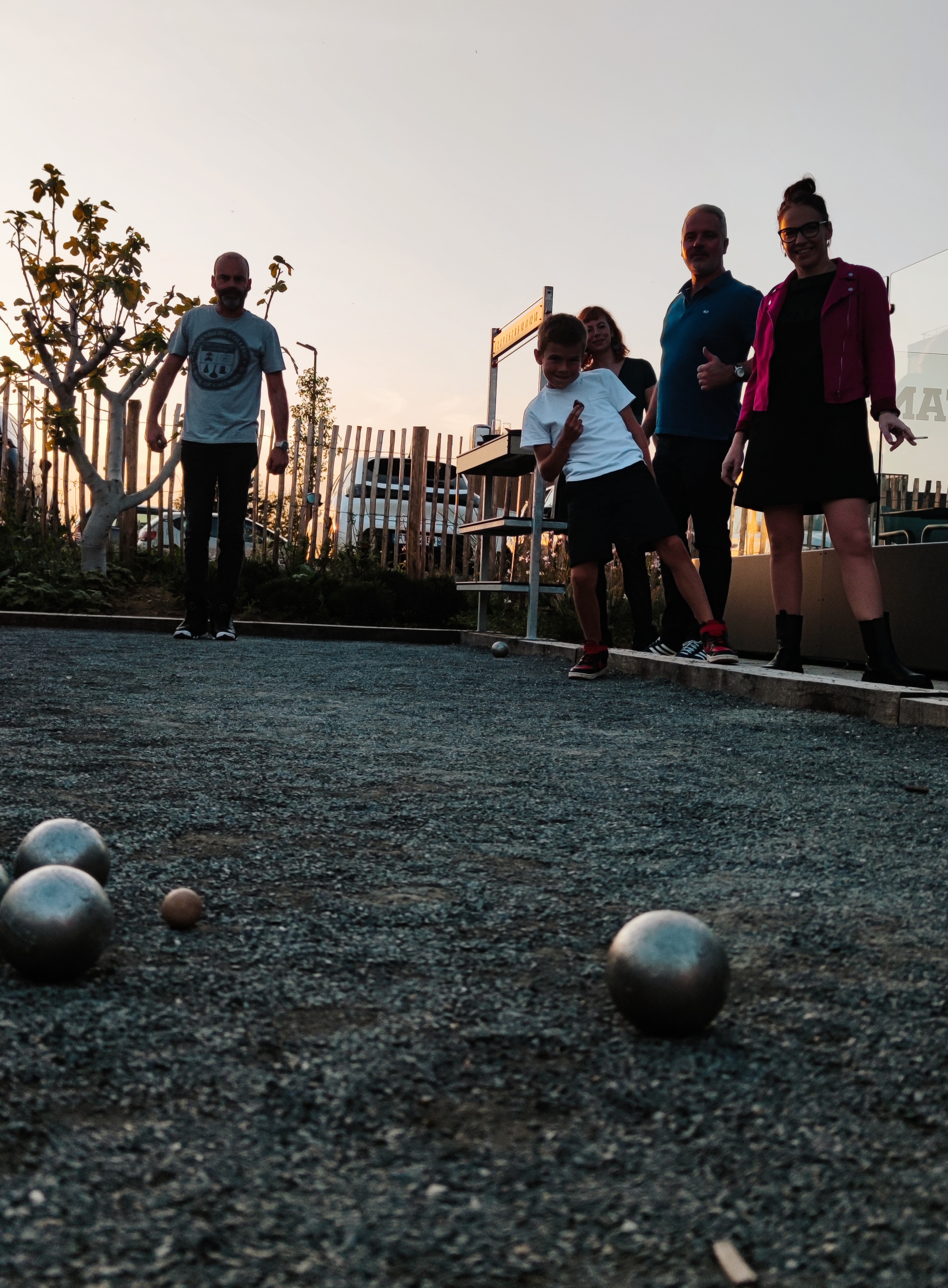 Nous avons passé une soirée fort sympathique, le concept est top, les terrains intérieurs/extérieurs très pratiques. Tout était bien, les burgers, la pétanque.. même le bras de fer improvisé contre le gérant !