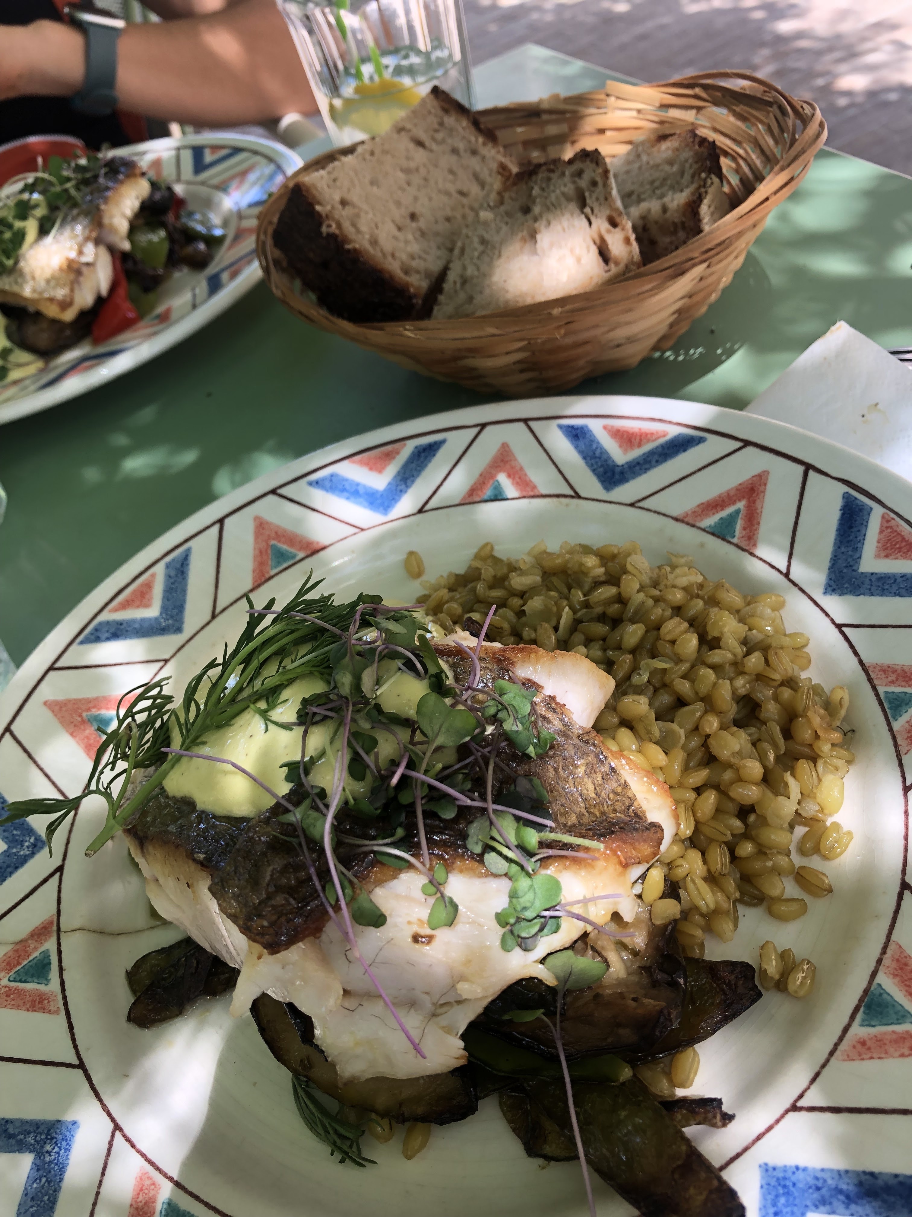 Un délice pour les yeux et les papilles! Service très sympathique. Place arborée et spacieuse. Une cuisine qui sort de l'ordinaire, très joliement dressée les barigoules, houmous, panais, falafel...oh et ce petit fromage de chèvre dont je souhaiterai connaître la provenance tellement il était sublime...tout était divin, accompagné d'un vin nature. Nous réitérerons l'expérience pour sûr!