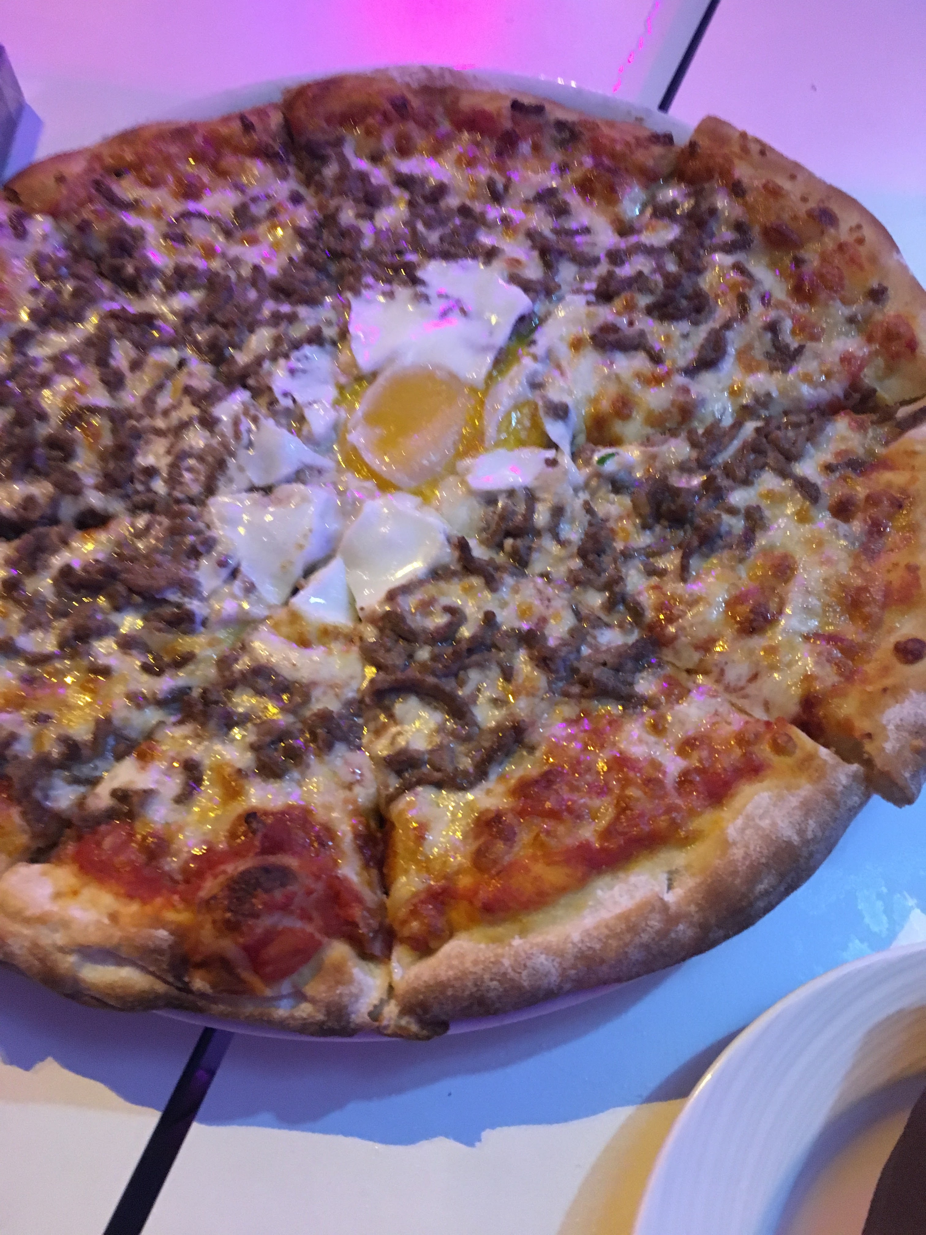 Très bien !! Nous dînons ici, les boissons sont excellentes et la pizza est bonne. Le service d'une fille aux cheveux bronze avec des tatouages sur le dos et la jambe est vraiment gentil et amical. Elle est très professionnelle, le manager devrait lui donner plus de salaire. Nous avons passé une merveilleuse nuit ici