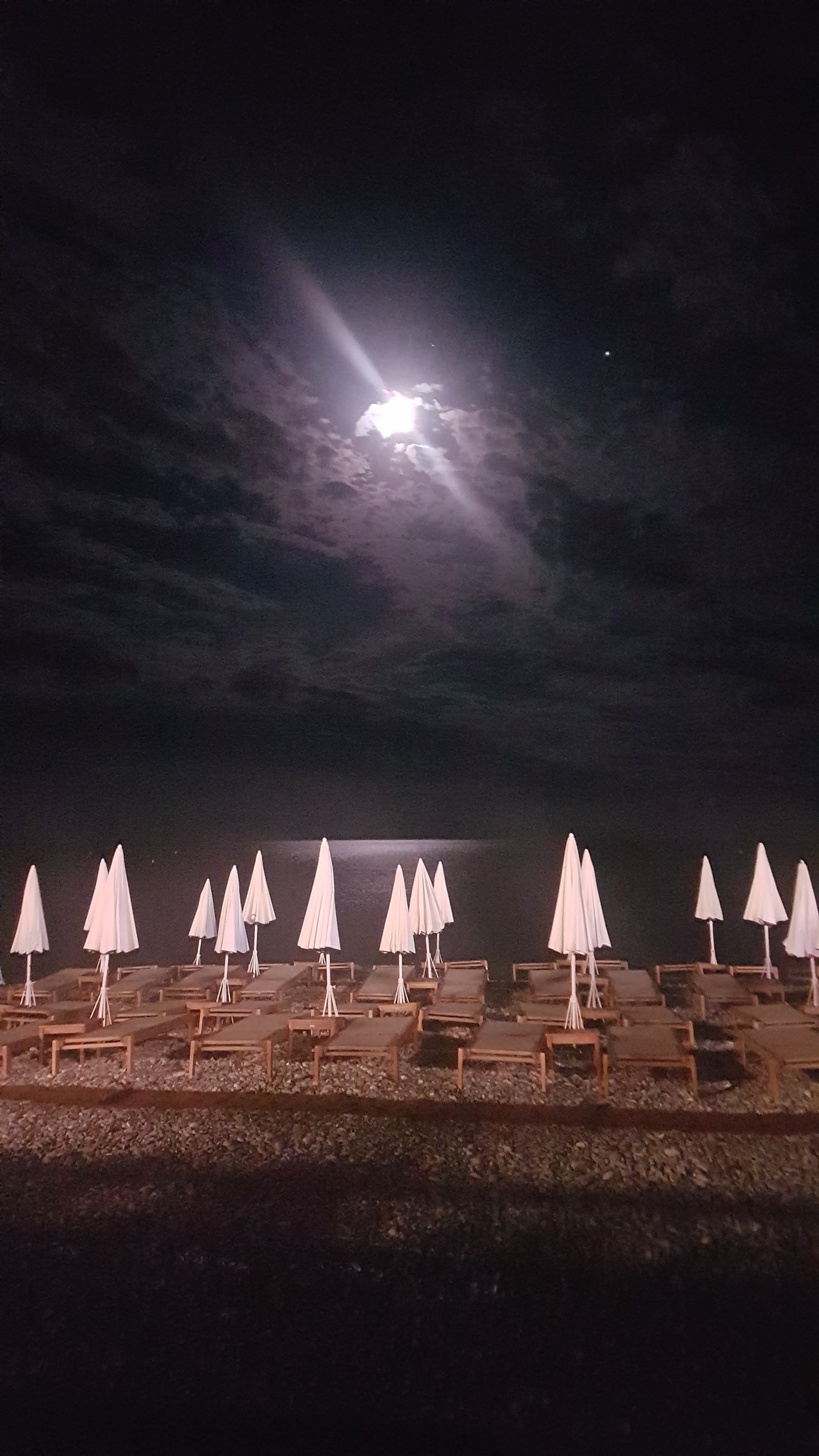 Vous pouvez louer un transat et un parasol pour un prix raisonnable. Bien sûr, ce n'est pas exactement une expérience de plage privée... Pourtant, c'est beaucoup plus confortable que de simplement s'allonger sur la plage de galets. Je m'attendais à une sorte d'aide pour entrer dans l'eau, peut-être un chemin bétonné. Mais c'était juste la plage et comme je l'ai dit, c'est très caillouteux. Pas amusant de marcher sans chaussures ! La nourriture n'était pas mauvaise mais un peu chère.