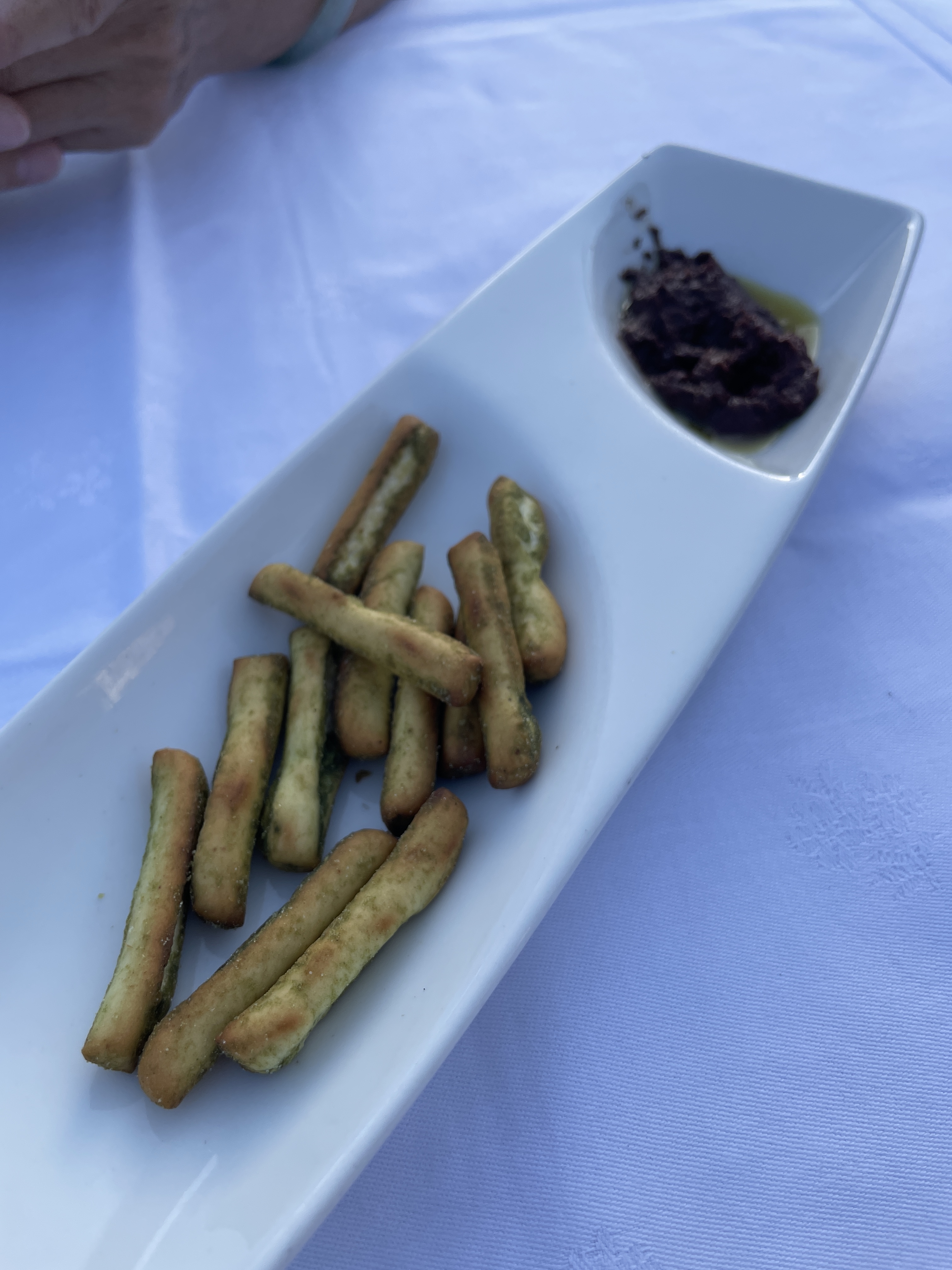 Bon pour les groupes, belle vue. Équipe efficace. Options végétariennes limitées (les anchois sur du pain ne sont pas un plat végétarien). Plats ennuyeux, pâtes pas assez cuites, dessert sympa. Des portions énormes.