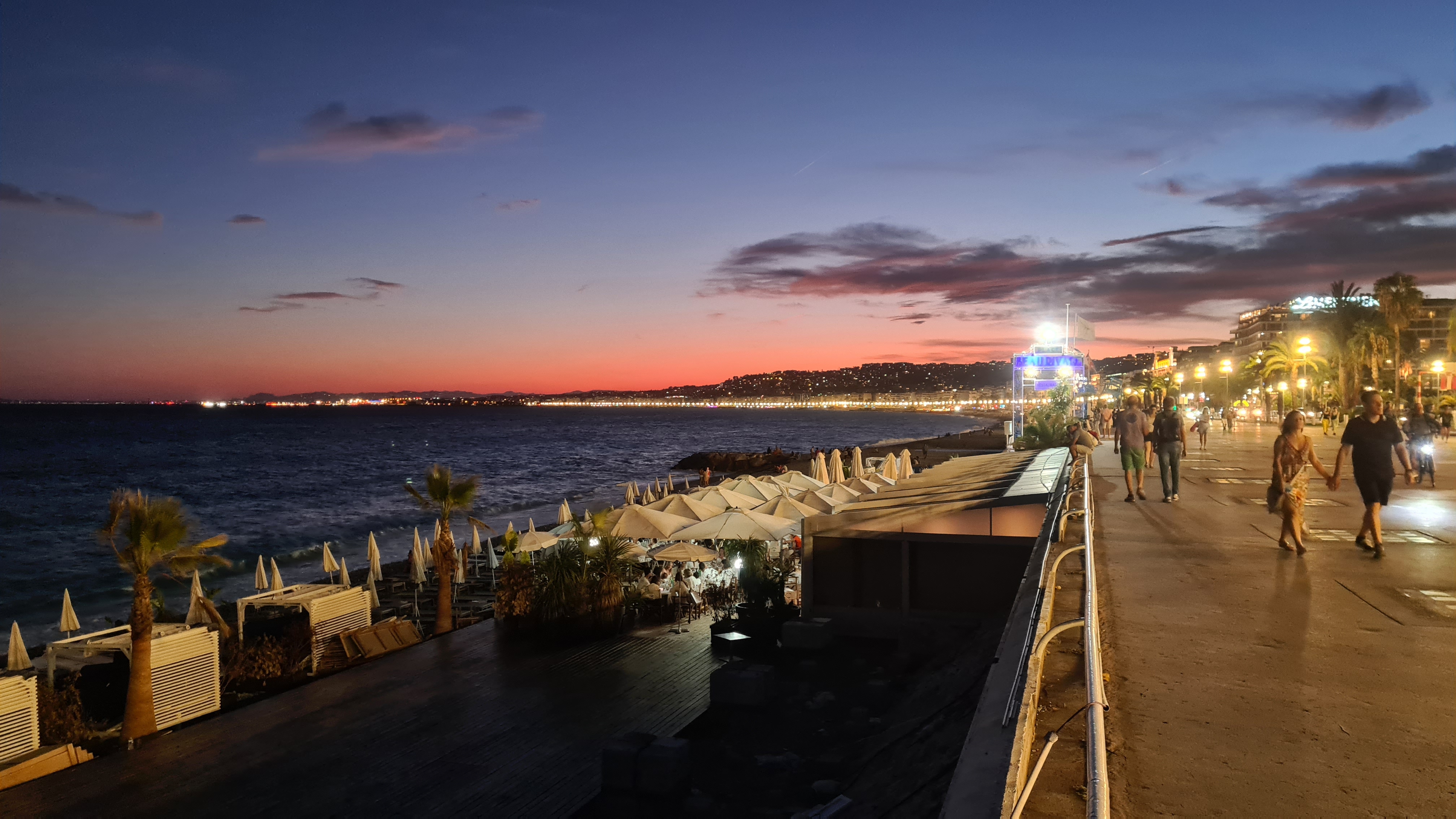 Bel espace, magnifique vue, public calme, beau monde, rue animée et joviale, franchement rien à dire, très content de ma venue sur nice