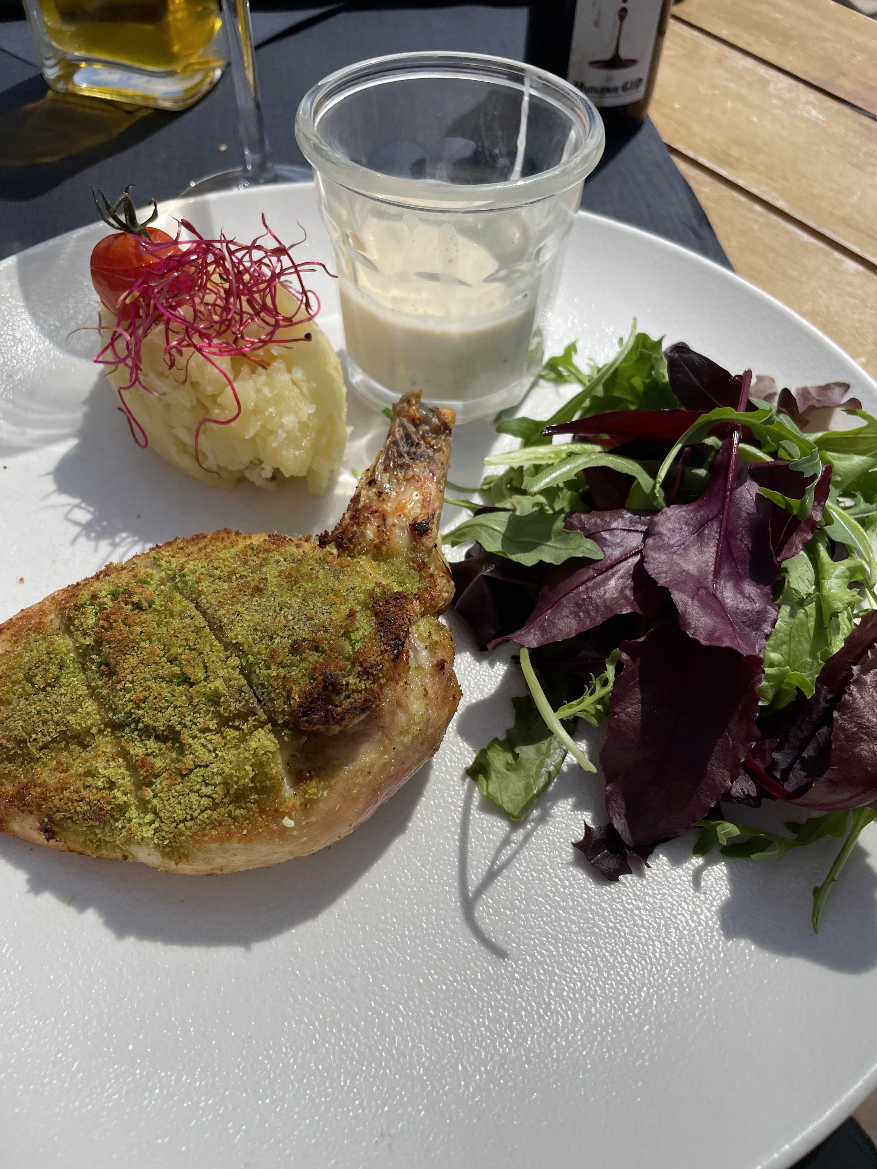 Un faux départ avec l’accueil pas vraiment sympathique puis après cela a été . Salade très convenable, vin rosé frais et jeune serveuse sympathique . Belle terrasse