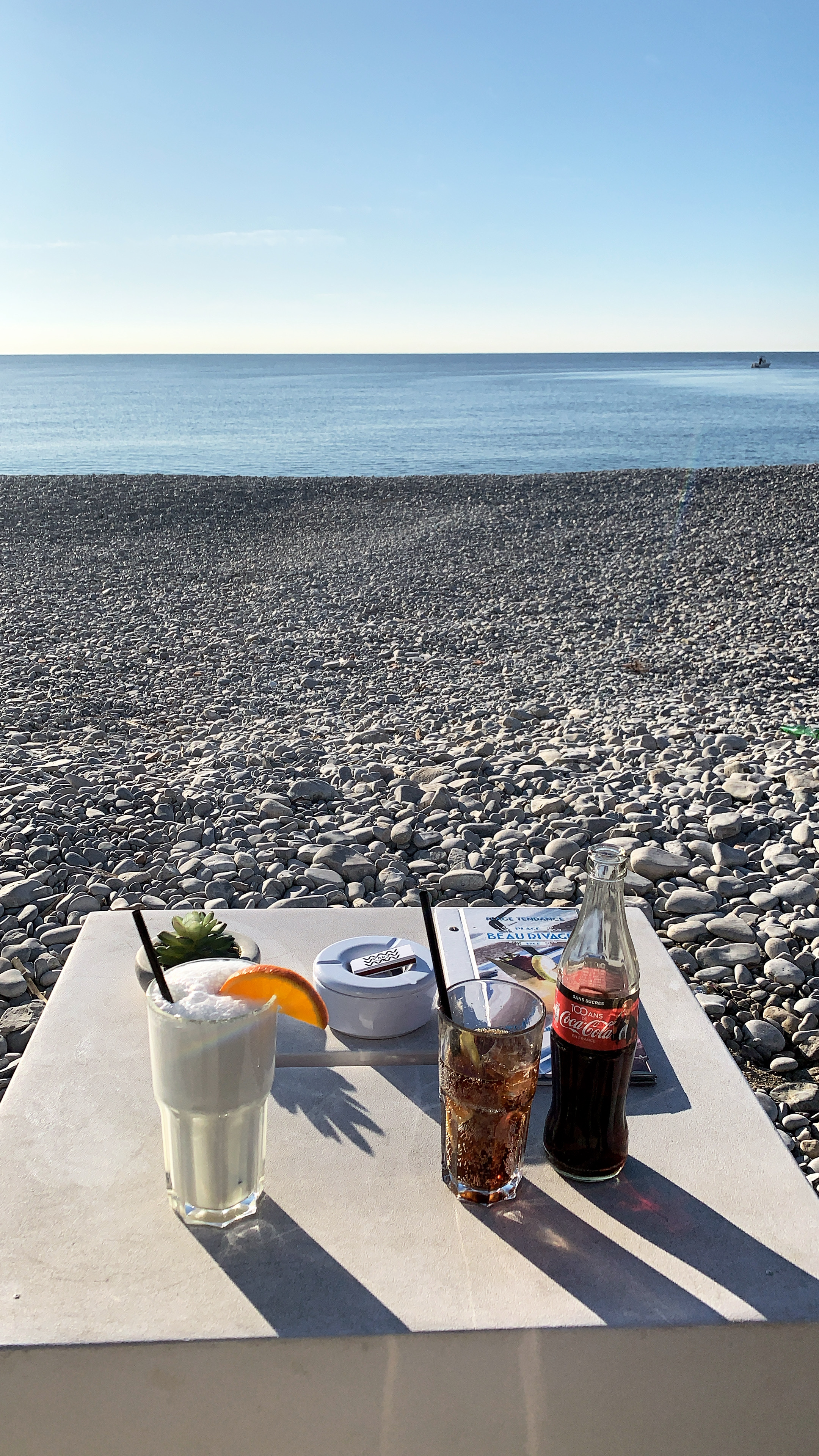 Super bar à cocktails sur la plage/promenade de Nice. La vue depuis la terrasse est magnifique car elle donne sur la plage/mer et les cocktails étaient bons aussi. Je le recommande vivement