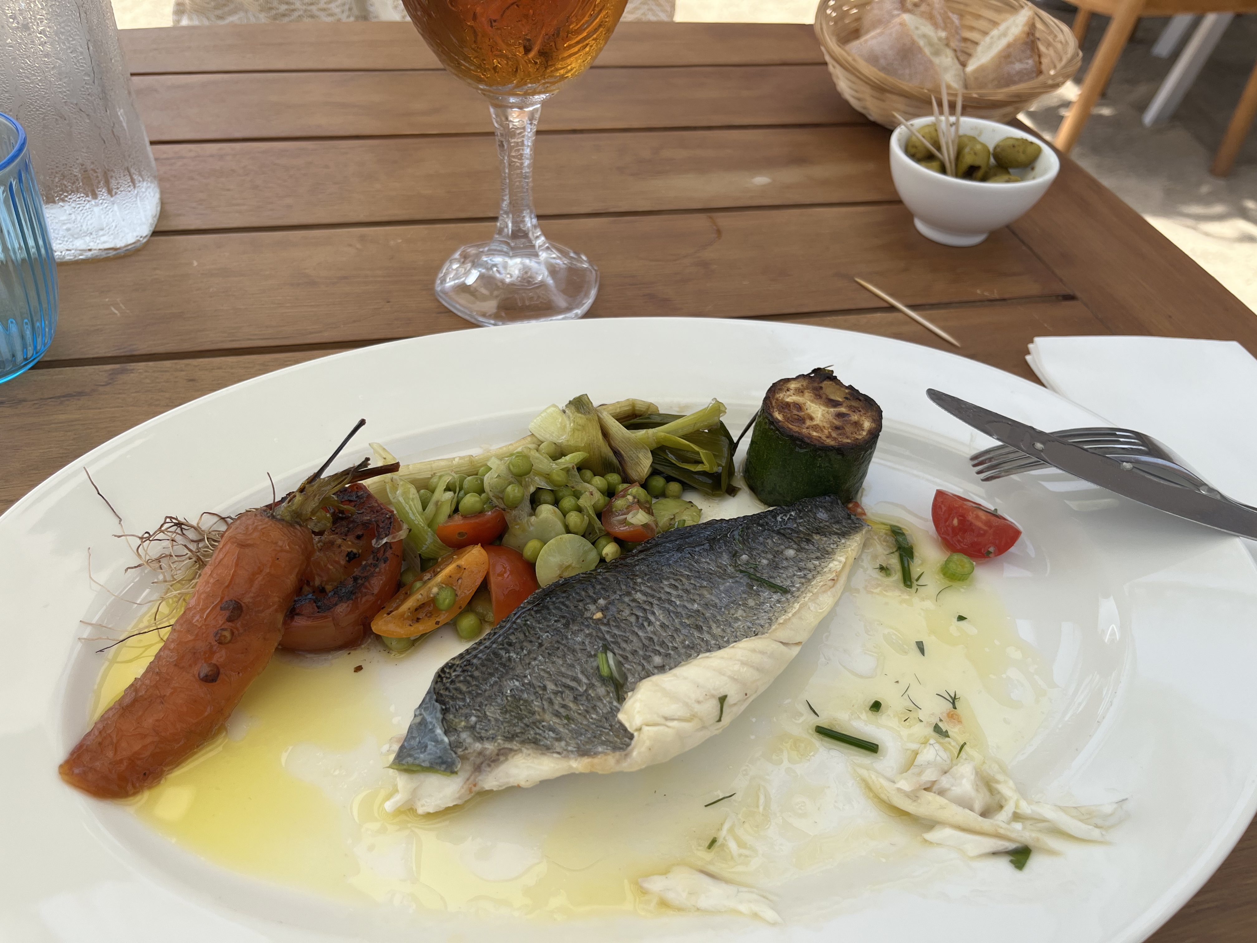 Filet de daurade extra avec ces petits légumes. Cadre sympathique. Accueil agréable souriant.