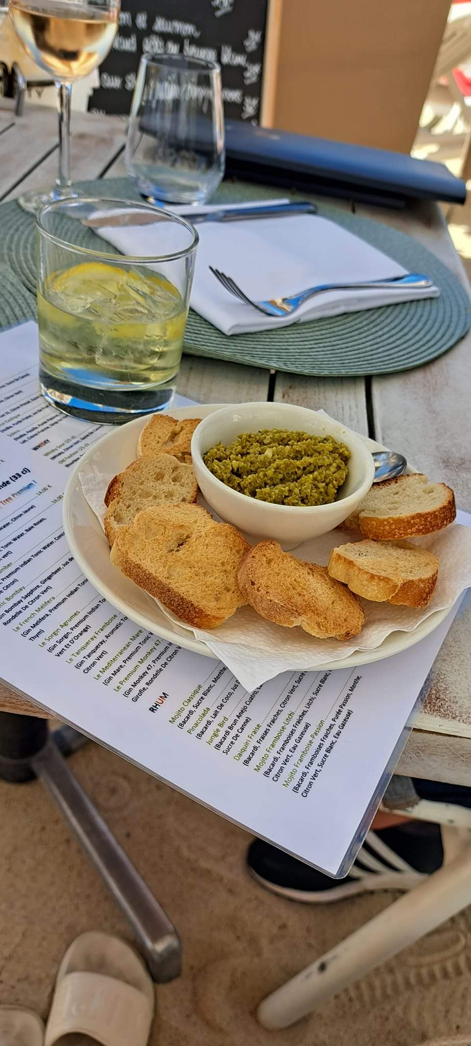Le coucher de soleil, la tapenade, le service et bien sûr le rosé !!!!