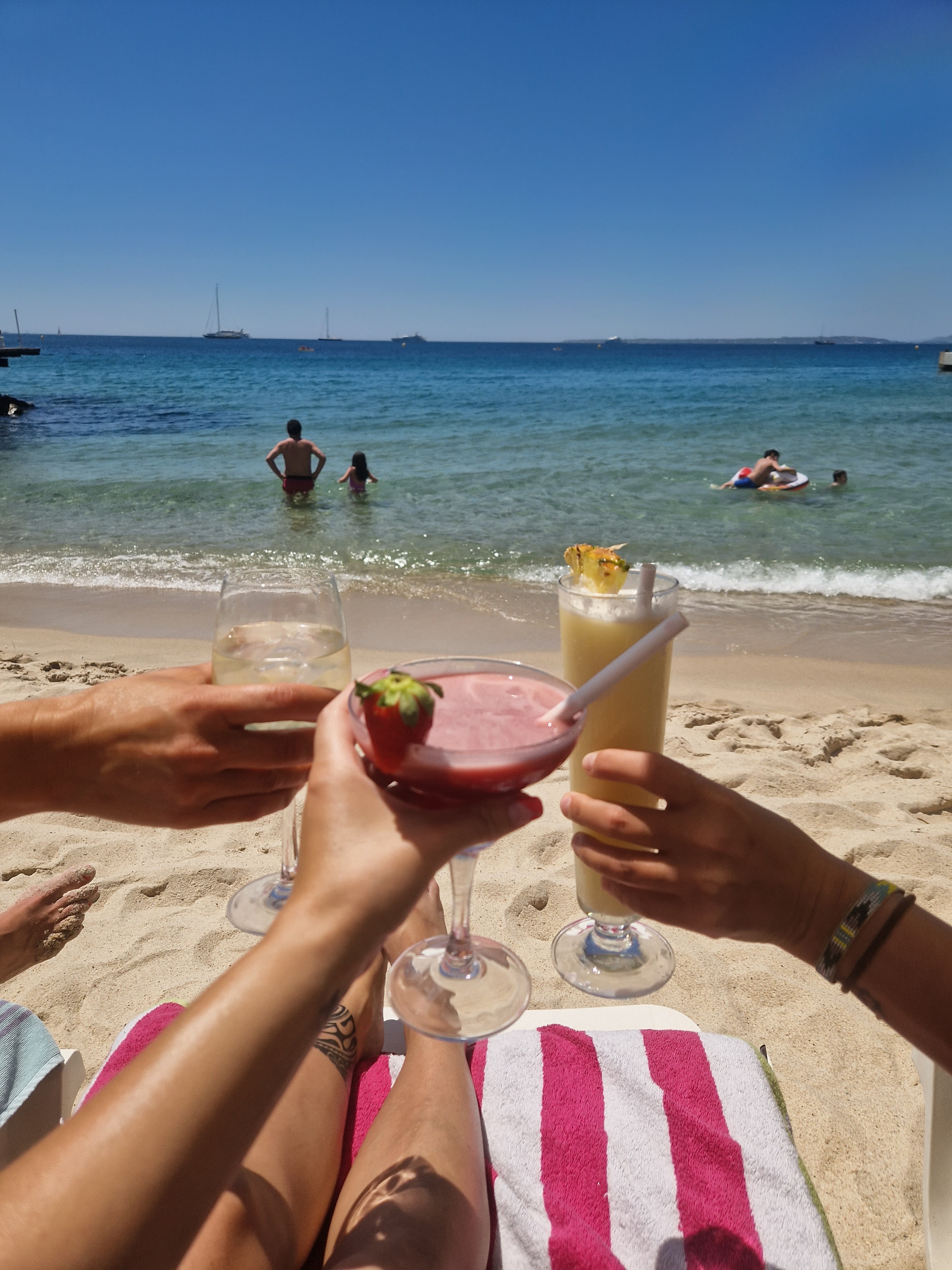Ambiance très sympa avec une vie magnifique . Les tables sur le sable avec une musique d'ambiance . On adore ! Et nous reviendrons probablement. Le service est rapide et les serveurs sont souriants et pro. Le seul bémol c'est qu'au vue des prix des verres, il pourrait au moins y avoir qq cacahuètes ou autres à grignoter. 11 euros le verre de blanc ou rosé minuty par exemple.. Le cadre est superbe.