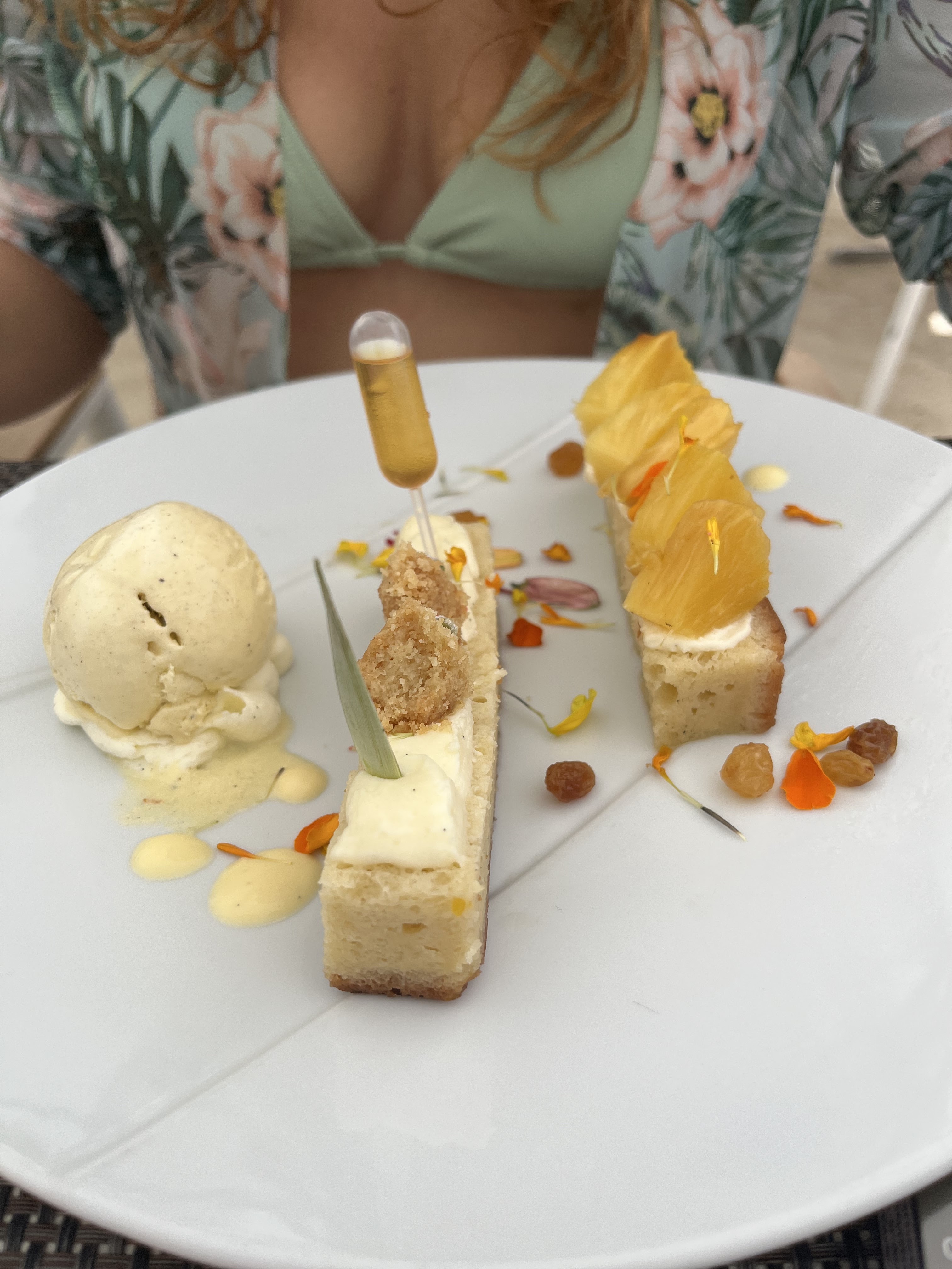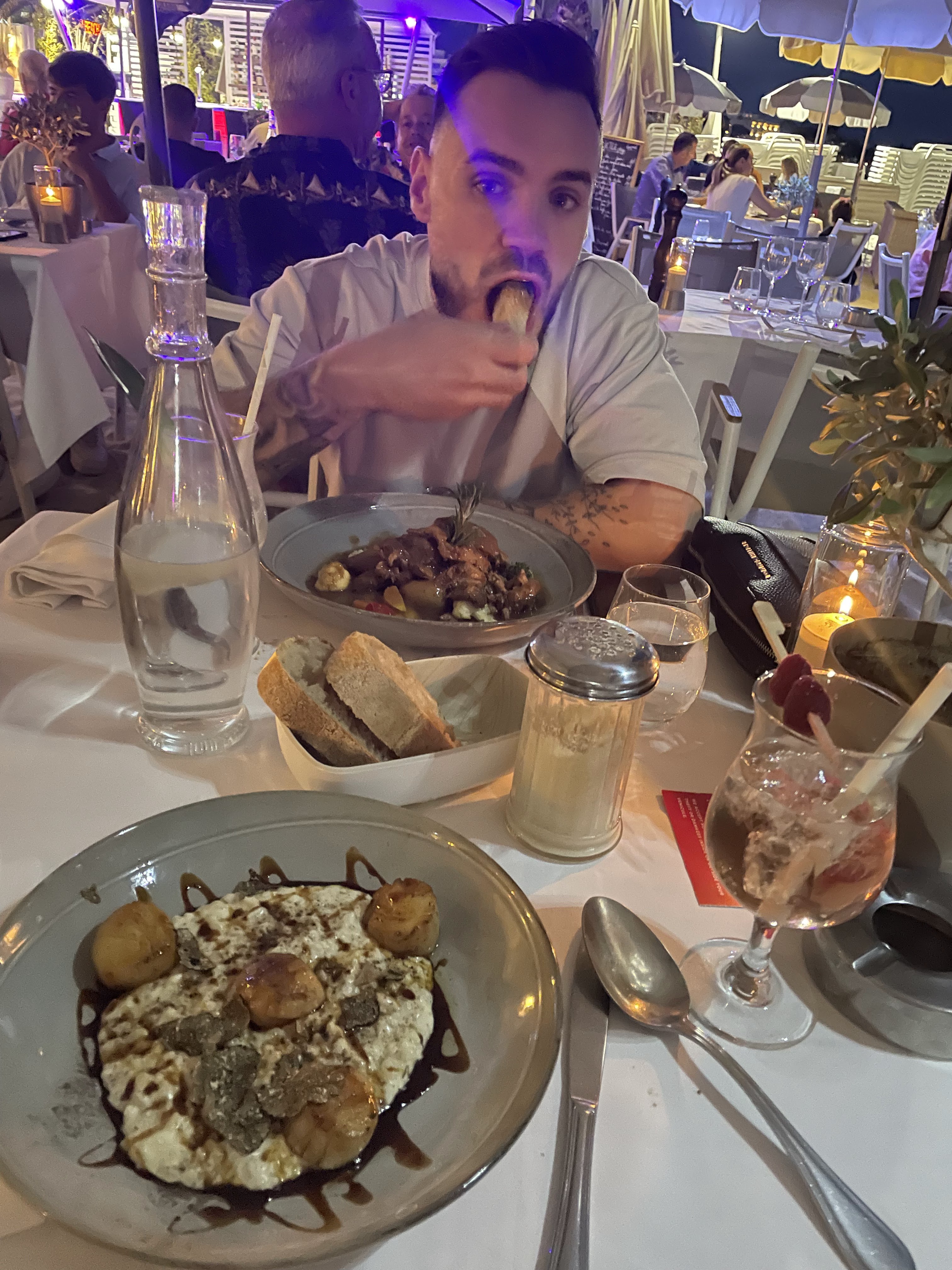 Très jolie plage, Service très sympa Toutefois c’est cher pour ce que c’est. J’ai pris le parfait de volaille à la truffe. Qui n’avait absolument pas le goût de truffe. Dommage. La tagliata de boeuf en revanche avait l’air excellente.