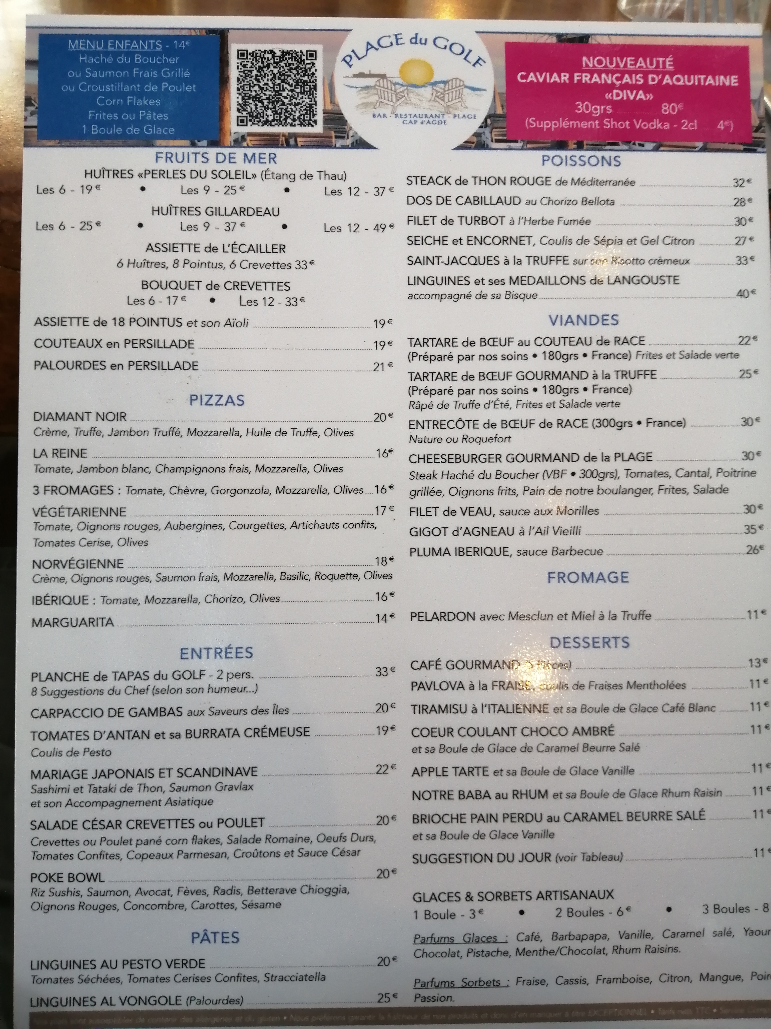Acceuil déplorable, au prix ou l'on paye cela n'est pas normal. Certes c'est la reprise Covid, les équipes sont un peu perdus et je le comprends, mais de là à être nonchalant avec les clients (la patronne).... A la plage du golf, le client n'est clairement pas roi ! A éviter