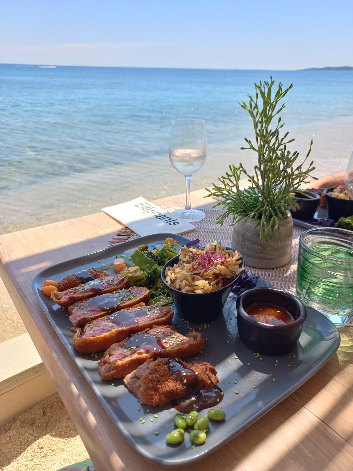 Journée parfaite à la plage des éléphants! La plage est superbe, l’eau est transparente…un vrai petit coin de paradis. La carte du restaurant est variée…difficile de choisir. On a envie de goûter à tout 😊 J’ai opté pour un tataki de thon…quel délice! Le personnel est charmant et aux petits soins avec la clientèle. Je recommande vivement cet endroit