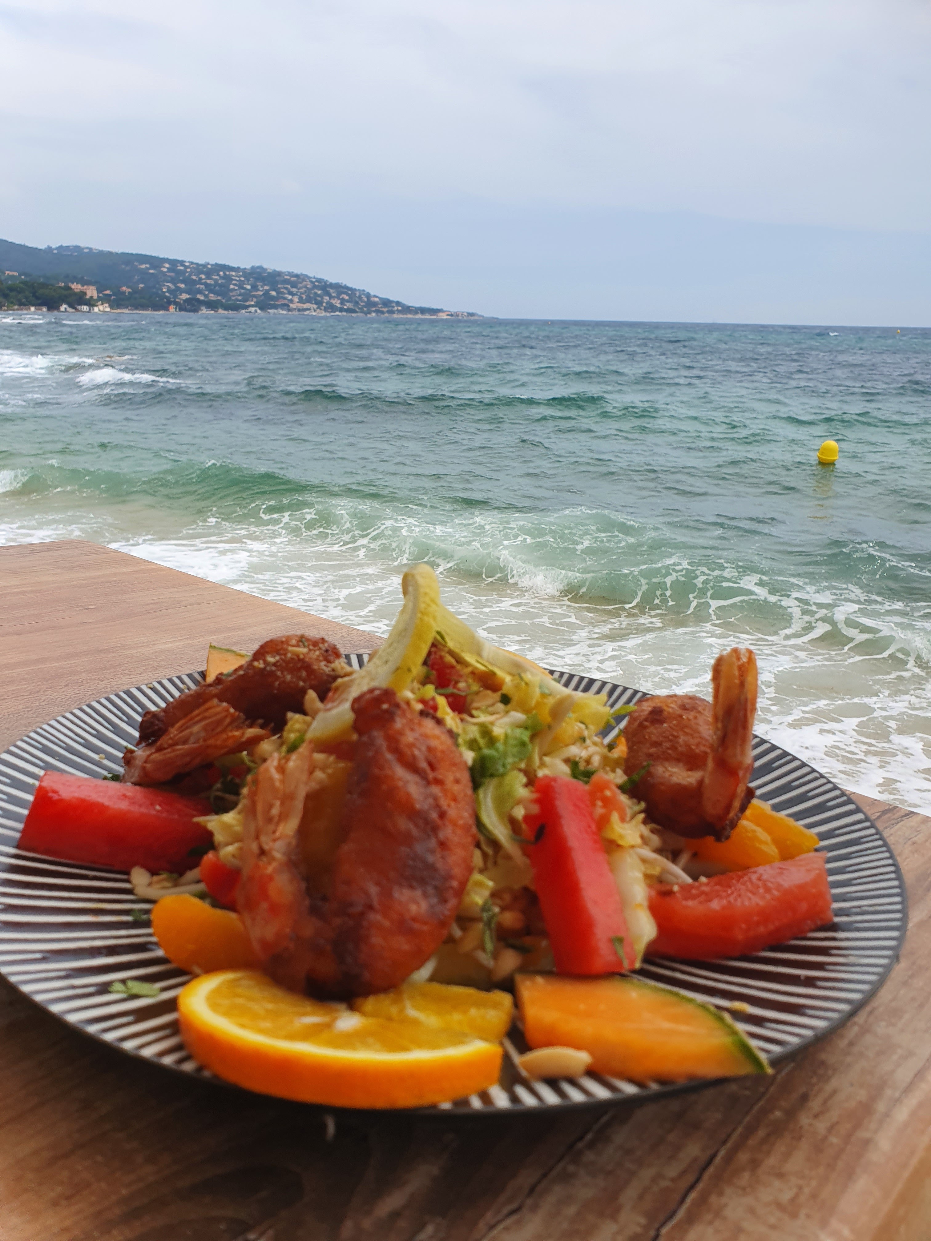 Très bon rapport qualité prix pour un établissement avec une vue magnifique sur la mer. Personnel très sympathique, un moment très agreable. Un plat au poisson et à la coriandre me rappelant les plats thaïs😋