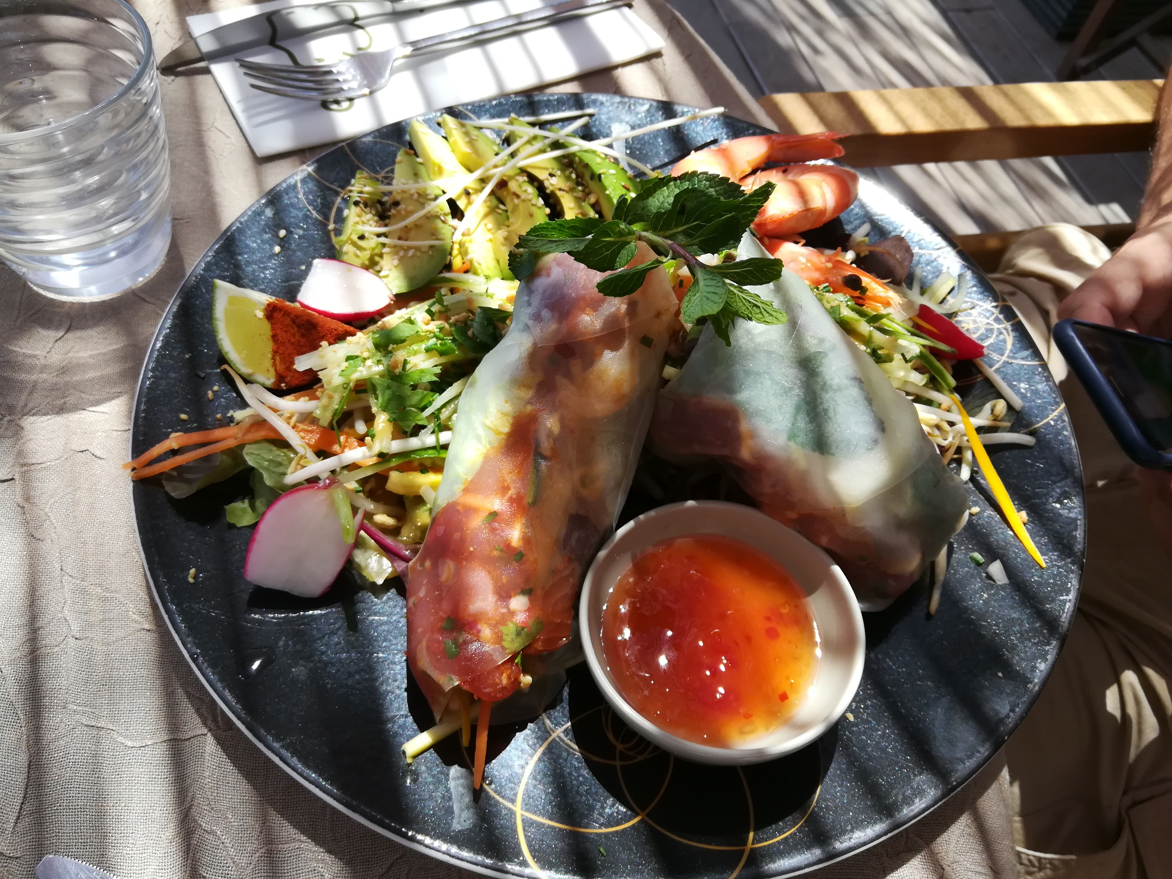 belle ambiance au bord de la mer avec carte variée aux notes asiatiques. Bonne cuisine et rations généreuses. Je recommande vivement ce restaurant.