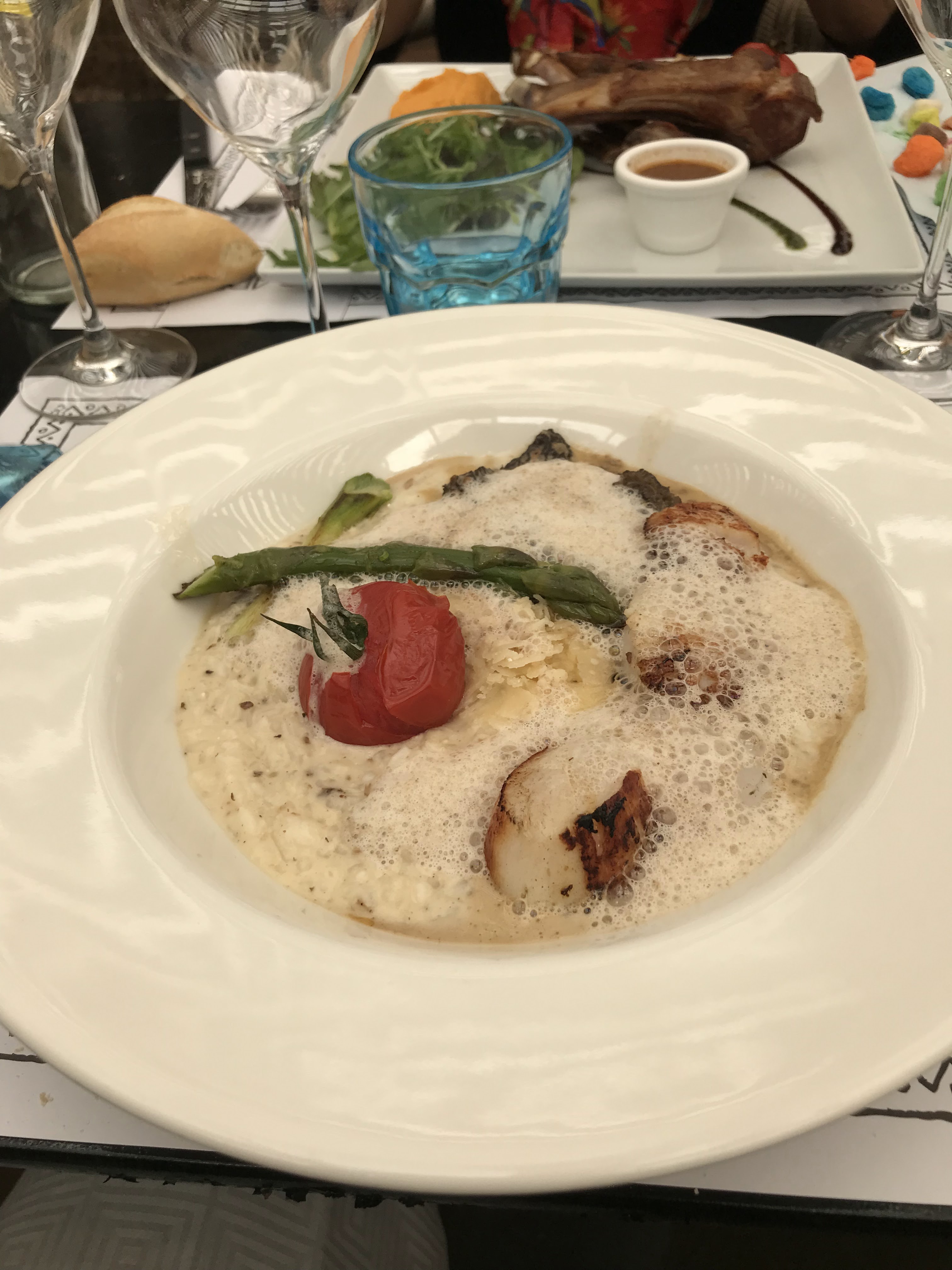 Un superbe cadre pour passer un bon moment entre copains au bord de l'eau à manger des tapas, ou dîner en famille ou en amoureux. Le risotto et le sablé étaient excellents.