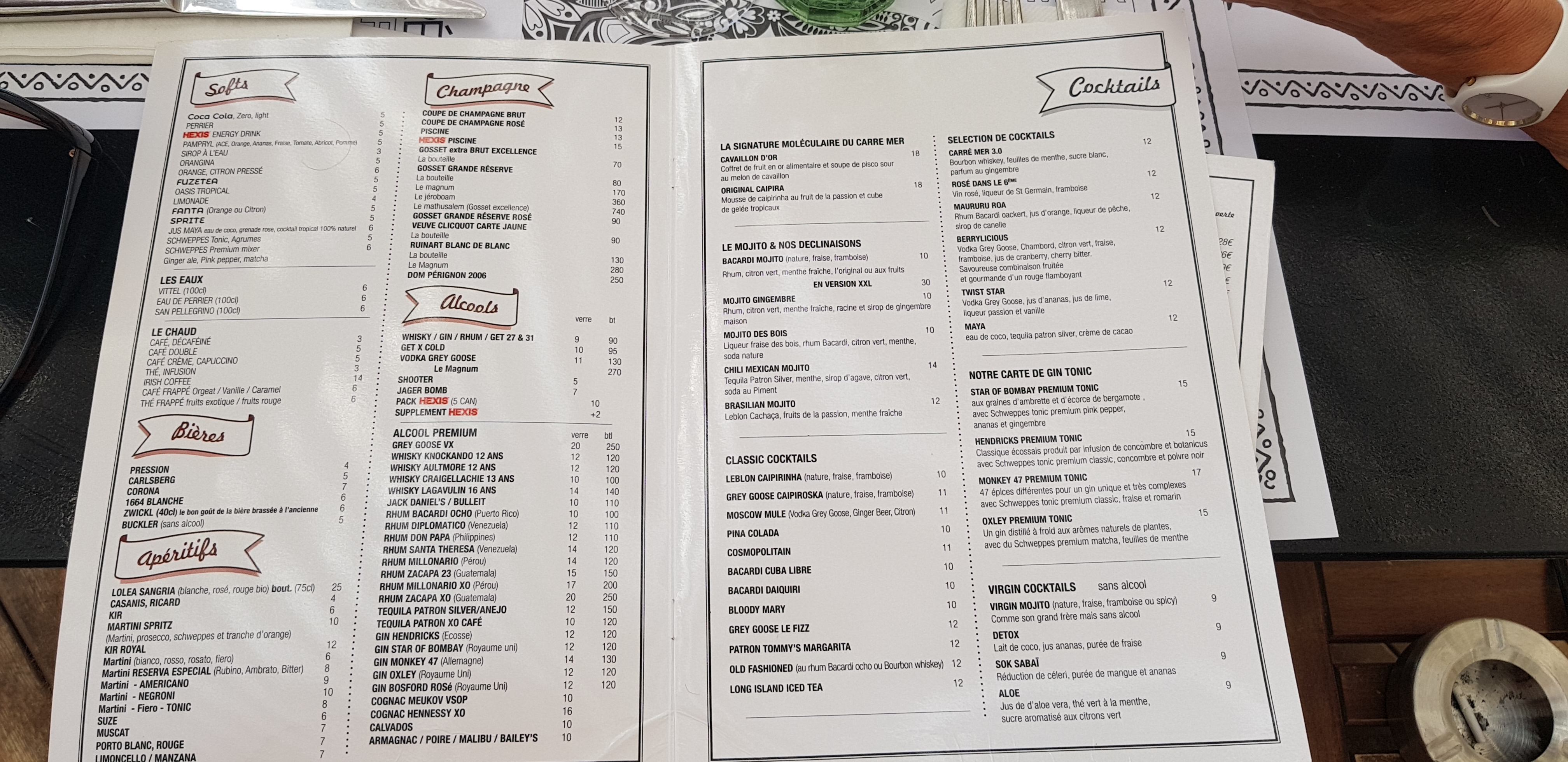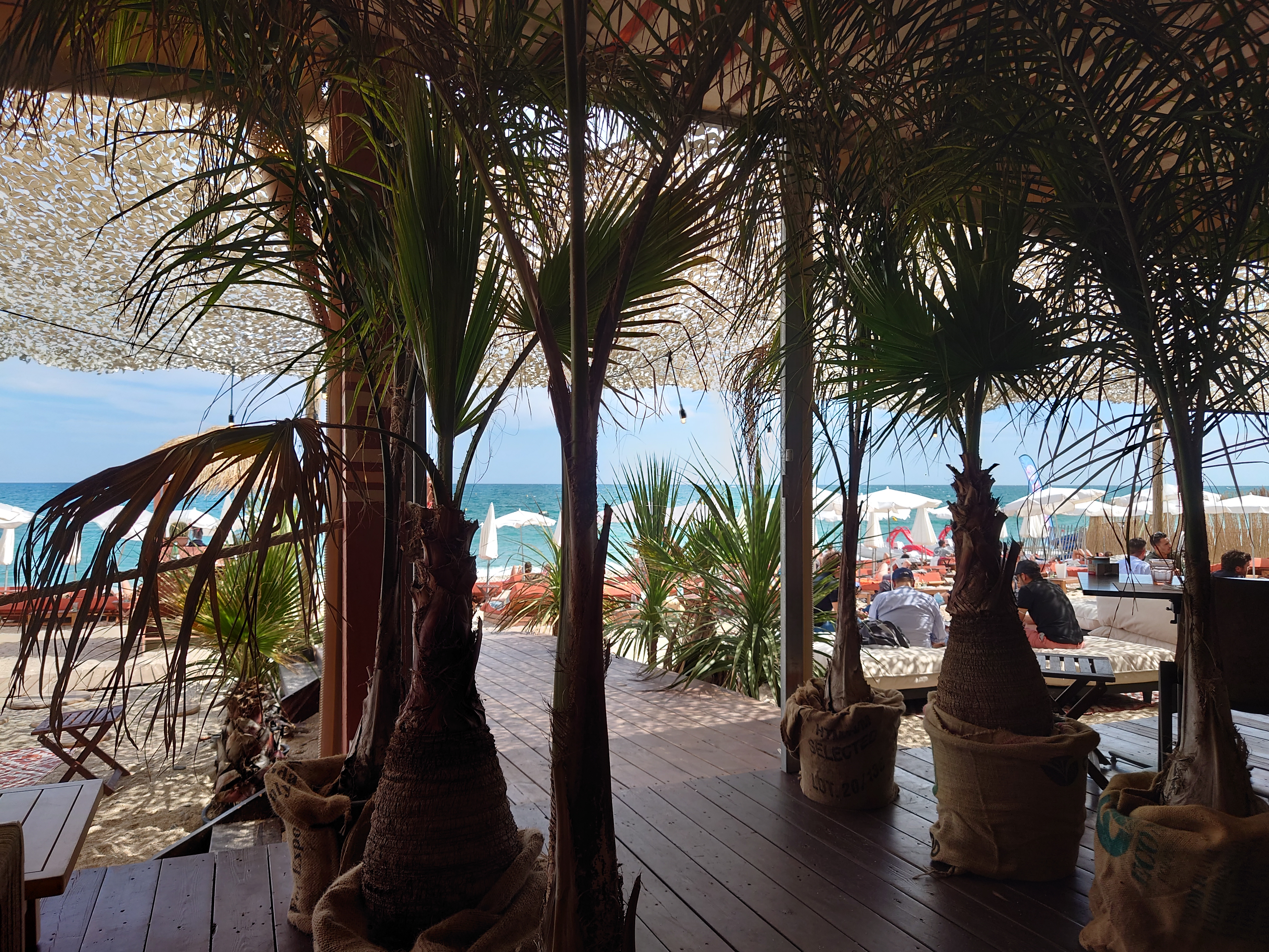 On est dans la paillotte très haut de gamme dans cet établissement des frères Pourcel ! Espace très confortable entre les tables, decor soutenu et très aéré, Ferrari, Audi RS8 et Porsche garées devant l’établissement. Le menu est riche de plats relativement originaux : on a pas été “embarqué” plus que ça par les qualités gustatives de la stracciatella, ni de la salade de Seiche. Des plats principaux thon Albacore et filet de Daurade de bonne tenue. Service soigné. Expérience supérieure. Mieux vaut réserver