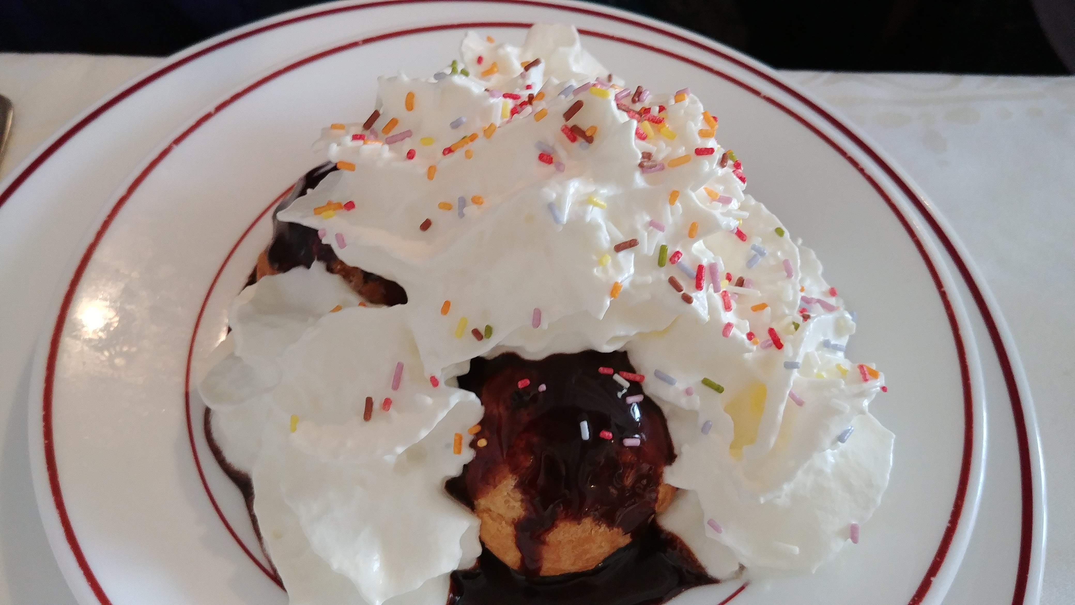 Restaurant propre et agréable, avec des nappes et des serviettes en tissu ce qui est un plus. Accueil sympathique et discret. Tajine au mouton, citron, olives et pommes de terre fade, trempant dans un bouillon clair sans goût, pas de saveur. La viande bouillie était accompagnée de deux petites moitiés de pommes de terre, une rondelles de tomate, de l'oignon et de 2 olives vertes sorties tout juste du bocal vu le goût et d'une petite tranche de citron confit. Profiteroles sorties du congélateur, soit, mais la sauce chocolat n'était pas de la tablette de chocolat fondu. C'était une sauce industrielle. Très déçue par mon repas.
