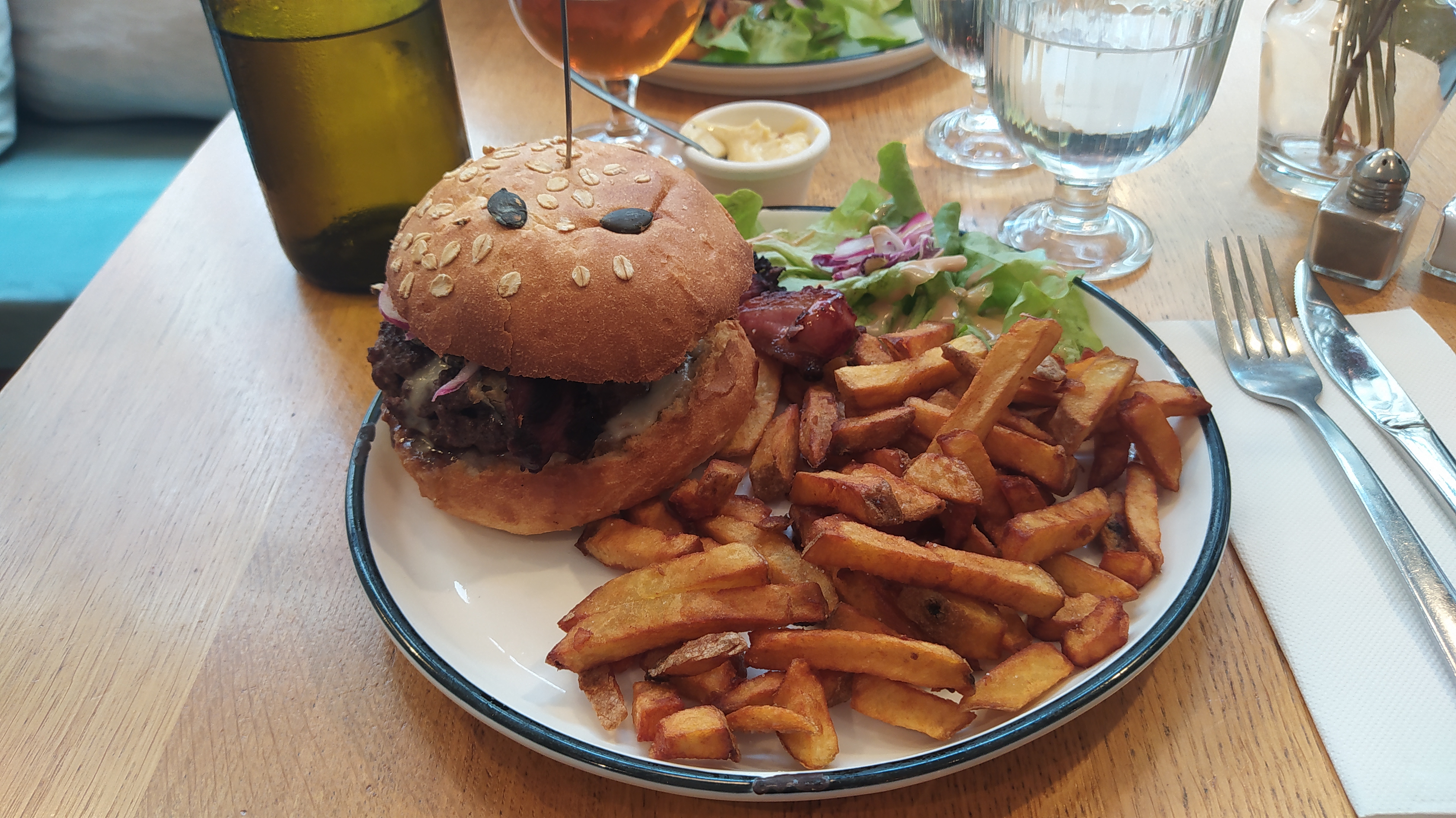 Découvert par hasard pendant notre week-end en amoureux. On a eu de la chance il restait qu une table de deux. Les burgers sont énormes et succulent les frites excellentes ainsi que la salade. Top je recommande ! Pensez à réserver !