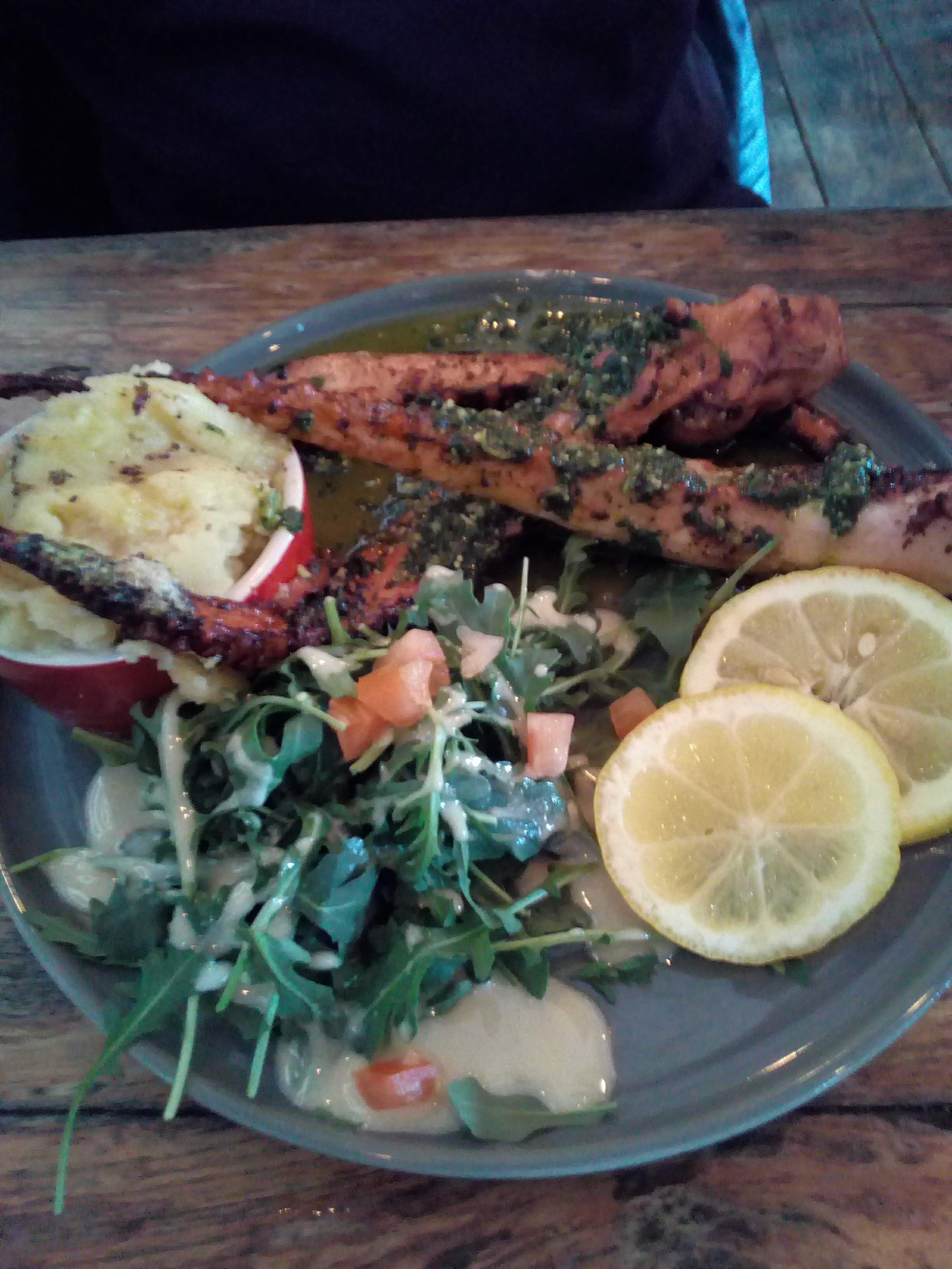Meilleur calamar que j'ai mangé (et j'en ai testé beaucoup;))! Belle quantité, finir sans aucune frustration est très plaisant ! Et la purée d'accompagnement très bonne. L'assiette tapas est très bonne aussi. Un ambiance déco très sympa et le service top ! Très bon moment. Merci
