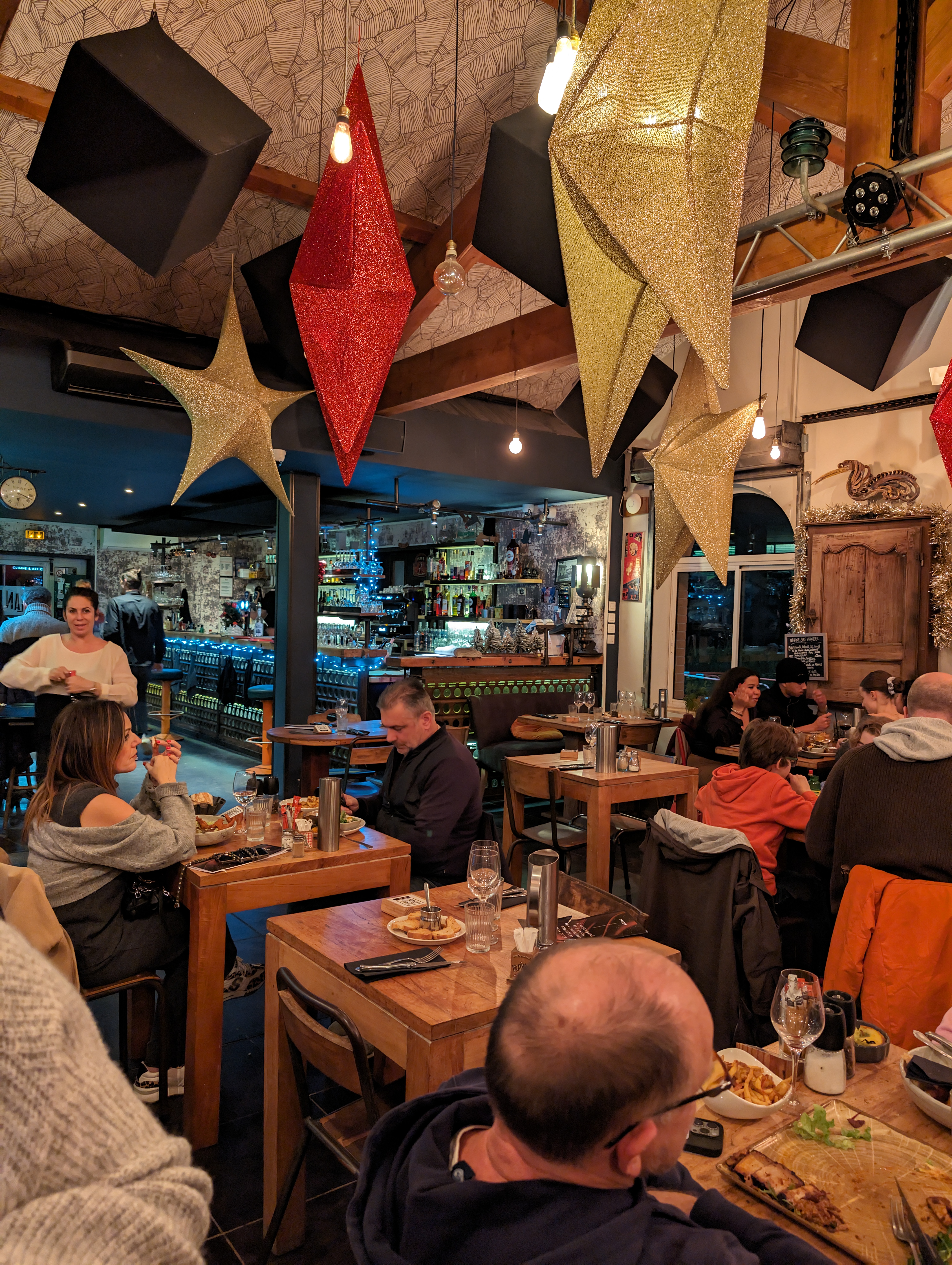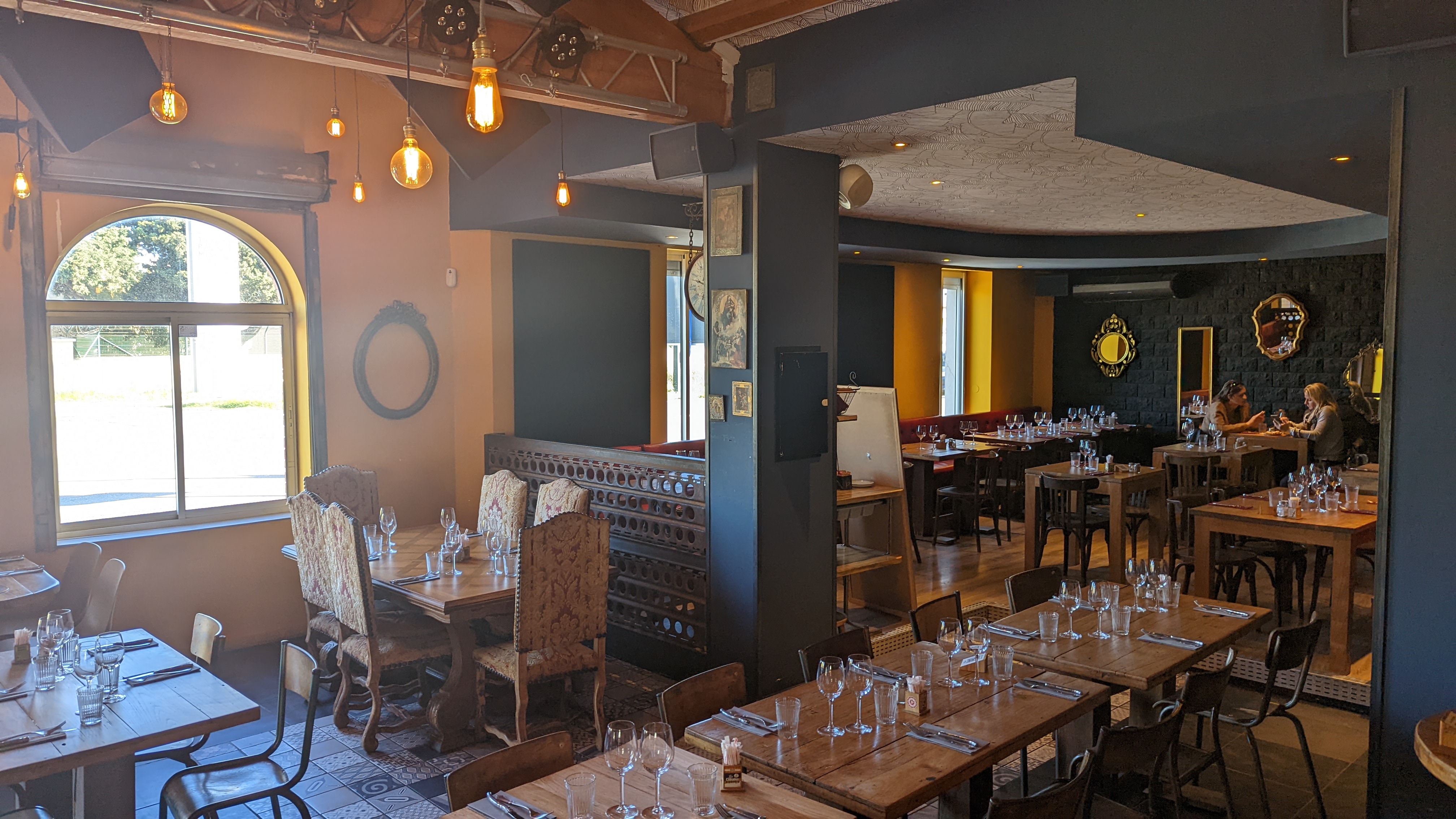 Établissement très bien agencé belle décoration très bistrot industriel à l'intérieur et vous pouvez également profiter d une très agréable terrasse avec des arbres et de belles tables en bois accessible fauteuil roulant parking de proximité personnel très souriant et carte très variée aussi bien à la carte que l'ardoise et thon mi cuit à découvrir belle carte des vins convient aussi bien au groupe que pour un repas à deux en amoureux 💞 merci l'équipe