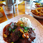 Très bon restaurant !! Nous nous sommes régalés de l'apéro au dessert. Les cocktails sont délicieux (le mojito glacé 👌), les ribs caramélisés (au boeuf effiloché)😍 juste dingue, je recommande ++ ! Le dessert excellent(pain perdu avec boule de glace Buenos et chantilly, valeur sûre). En plus nous avons eu droit au digestif (rien que pour ça j'aurais mis déjà 4etoiles😂) Et le personnel est très sympa, et malgré le monde, prend le temps d'être présent pour nous. Merci, nous reviendrons !