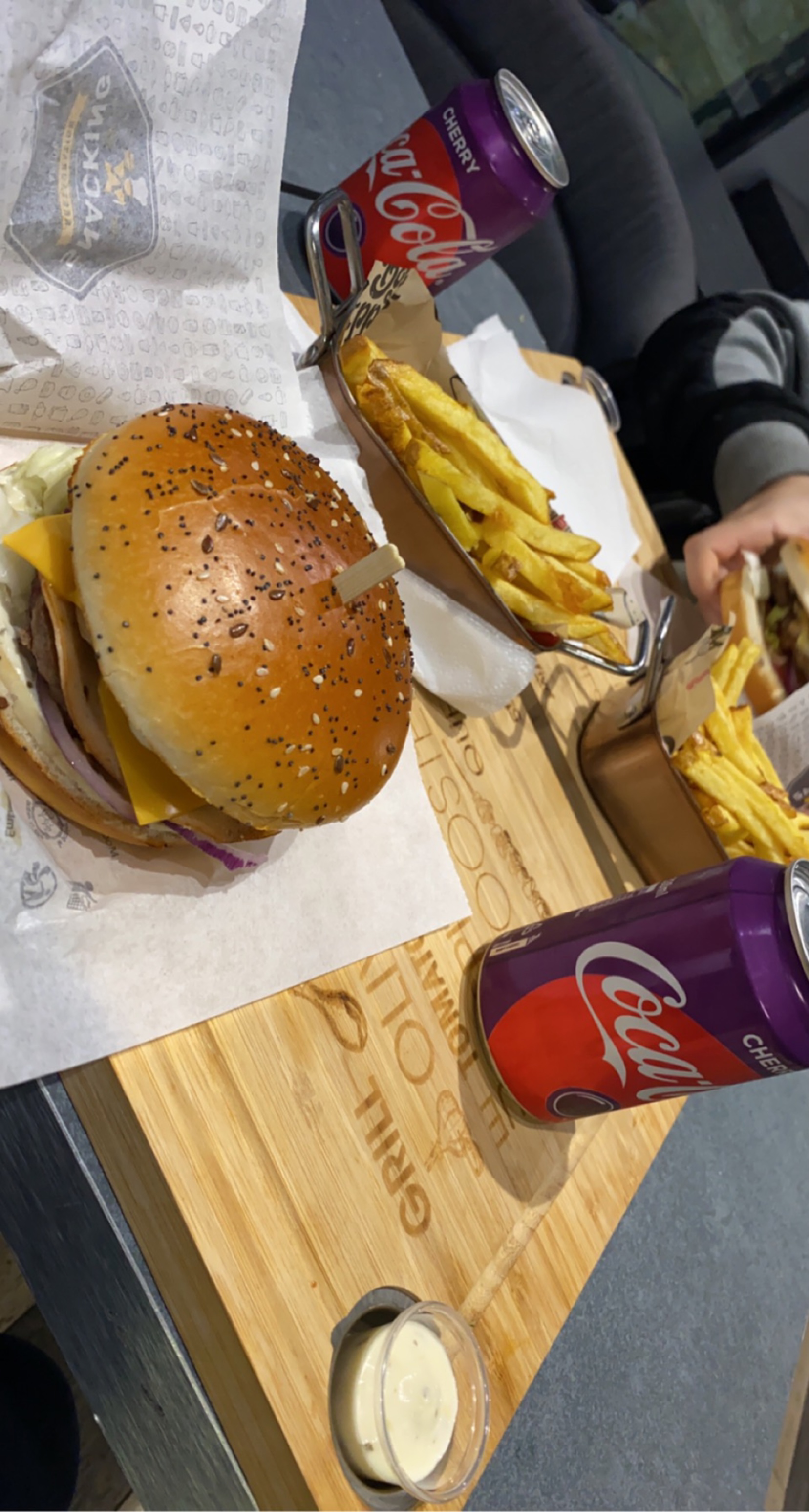 Hoy, visitando a mi familia, me detuve a probar esta comida rápida, sorprendiéndome de que la cajera hablara español, yo que tengo dificultad con el francés. la hamburguesa raclette y el batido raffaelo estaban muy buenos! En francés : Aujourd'hui, en visite chez ma famille, je me suis arrêté pour essayer ce fast food, surprenant que la caissière parle espagnol, j'ai du mal avec le français. Le burger à la raclette et le shake raffaelo étaient très bons !