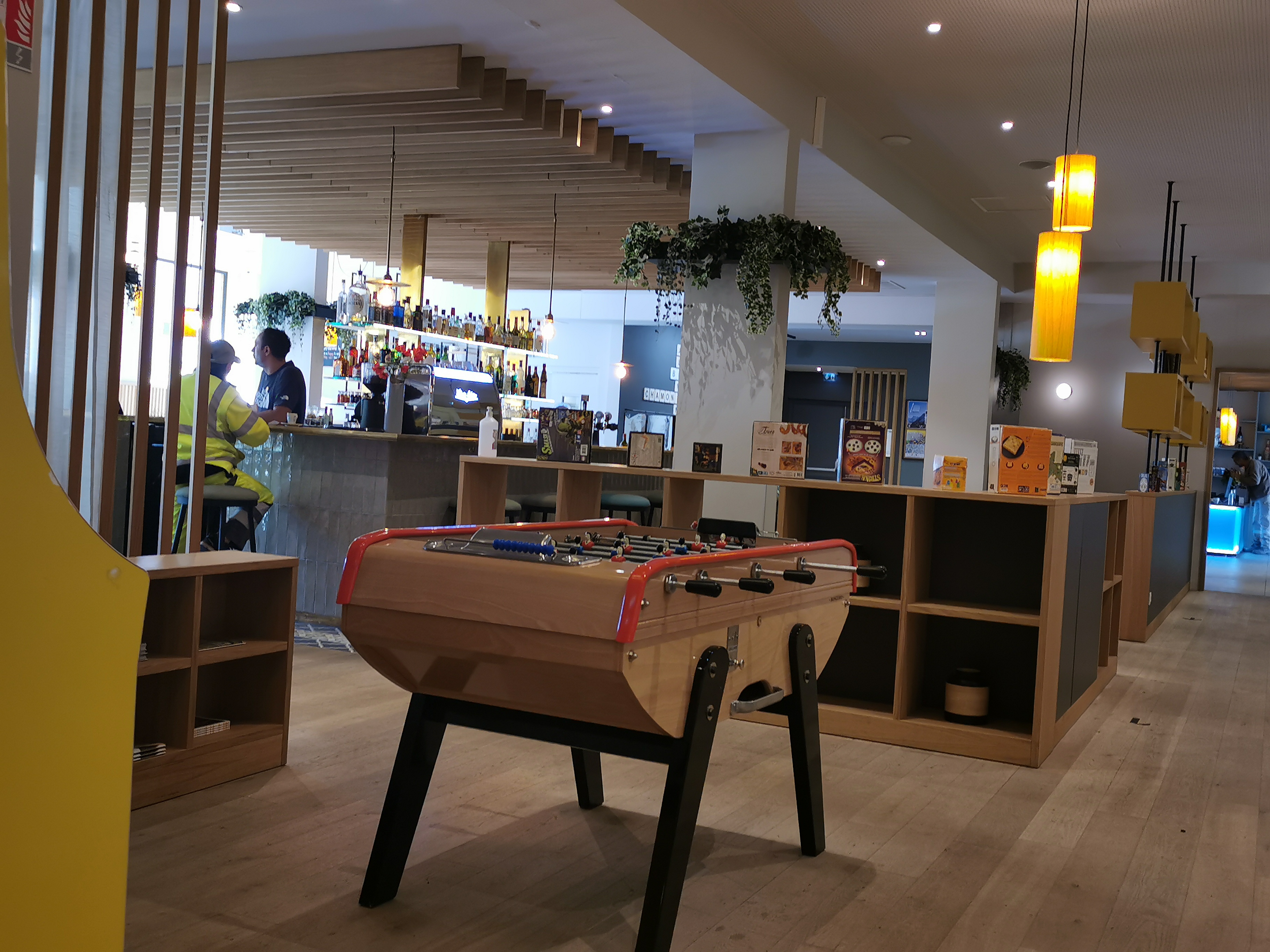Super séjour car super concept d’hôtel. Nous nous sommes très bien amusés grâce aux différents jeux : bowling, babyfoot, billard et plein de jeux de société. Parfait pour notre séjour teambuilding ! Et nous avons très bien mangé aussi. Hôtel moderne propre et beau. Merci à toute l’équipe pour l’accueil très pro et sympa.