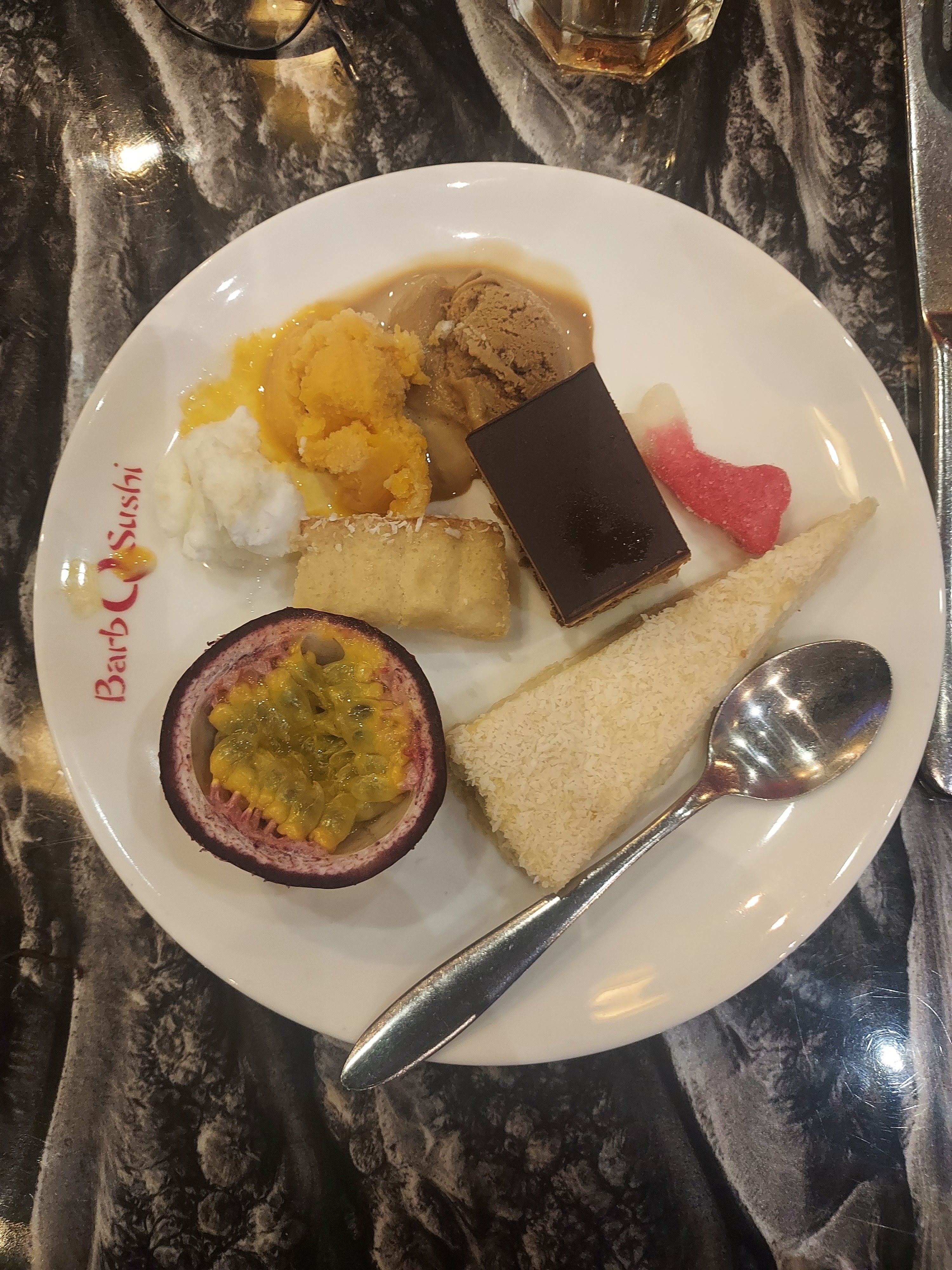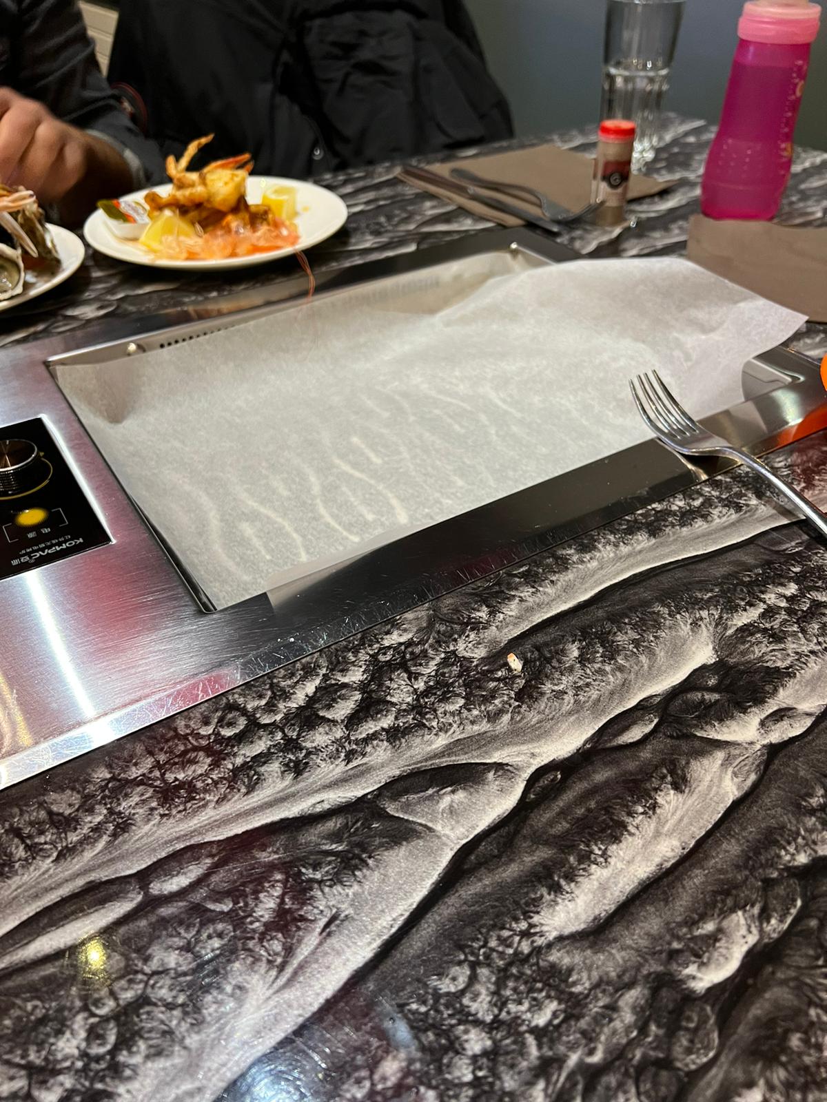 Le concept de la table avec son propre grill intégré est intéressant, il y a cependant peu de sushis en variété classique, les coquillages et crustacés sont plus importants que la variété de viande proposée ce qui est idéal pour les personnes préférant poissons et fruits de mer.