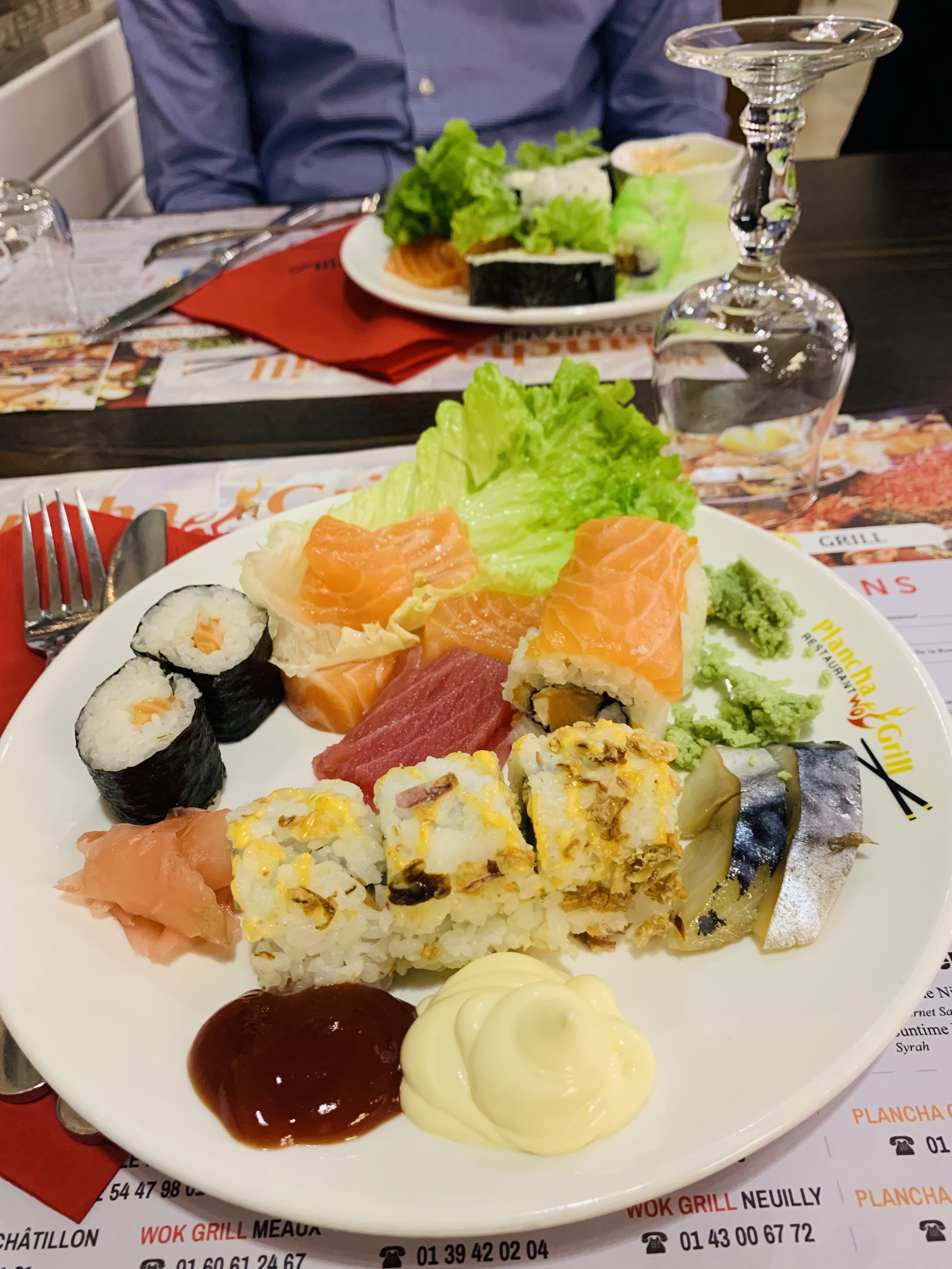 Toujours bcp de clients ! Un buffet varié et bien garni ! Il y a beaucoup de choix de poissons, crevettes et de viandes. Les accompagnements sont également très variés. Les sushis sont limités et gros, mais restent très qualitatifs. Je recommande