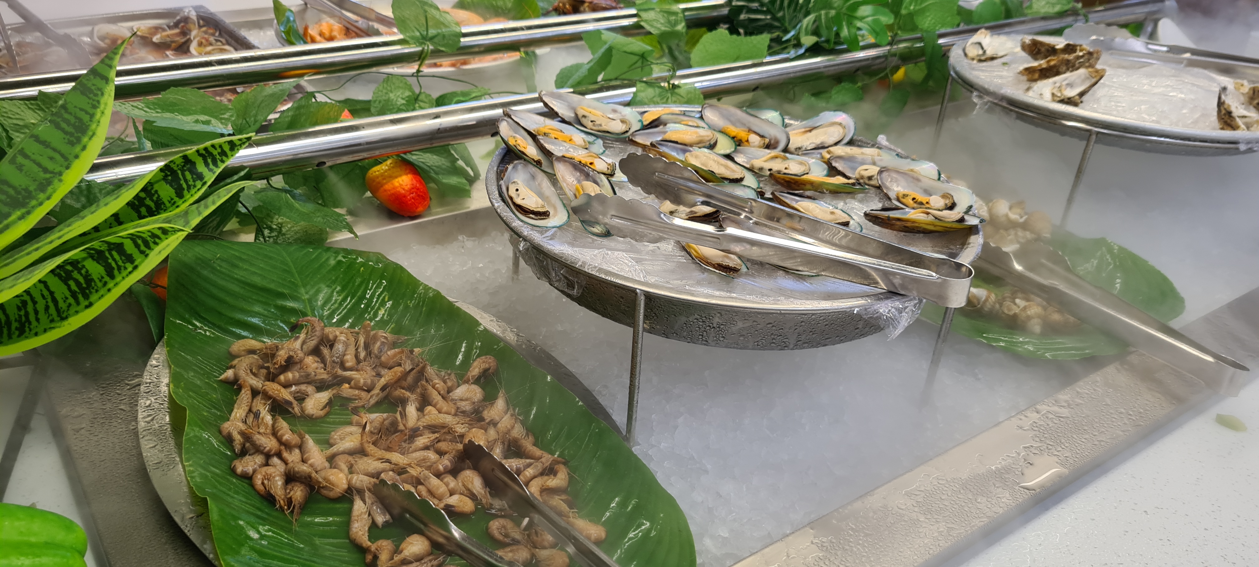 Très large gamme de buffet : salade, soupes, sushis, fruits de mer, friture (nems, ...), viande, grillade, woks et dessert. La fraîcheur était au rendez-vous. Bon choix de boisson. Tarifs raisonnables. J'y retournerai régulièrement.