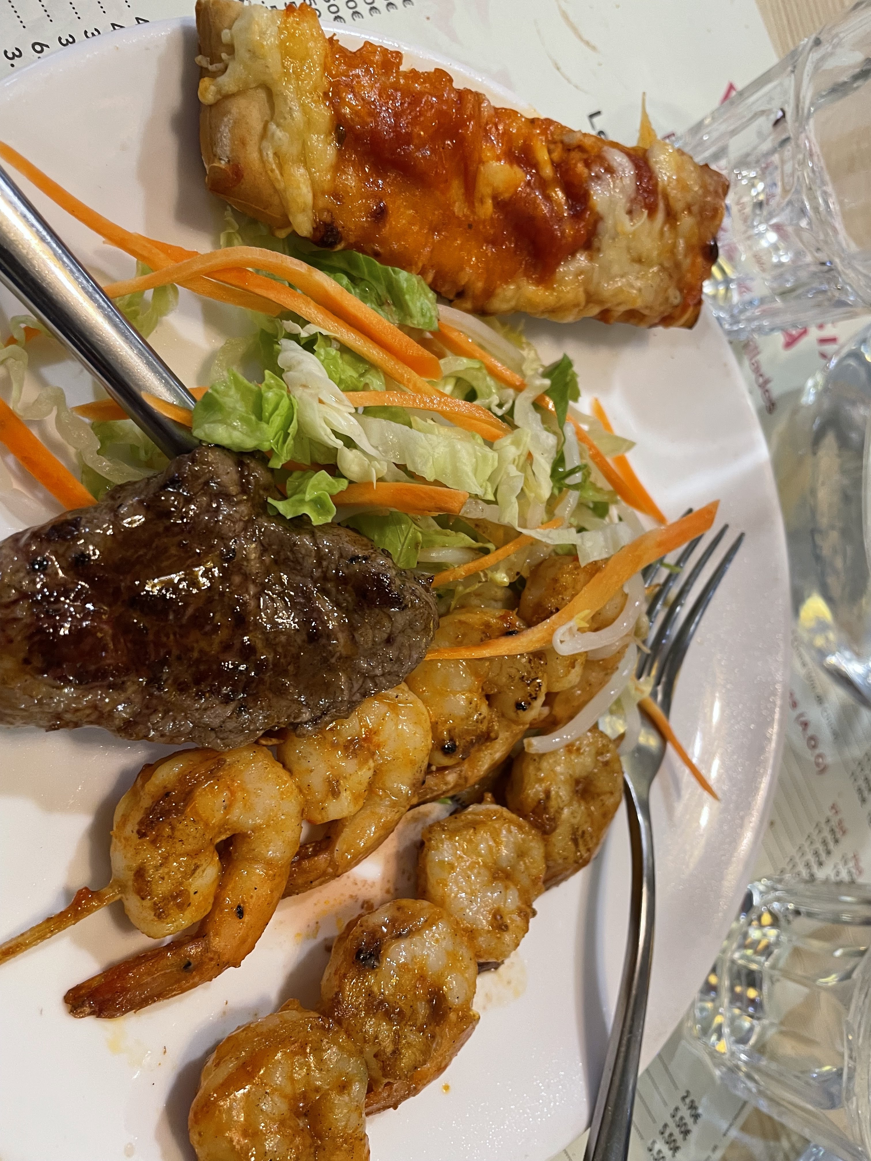 Nous avons super bien mangé ! Un bon buffet, avec du choix, et de la qualité ! Je recommande avec plaisir. Et encore merci pour le robot qui m'a amené mon petit gâteau d'anniversaire 🥰.