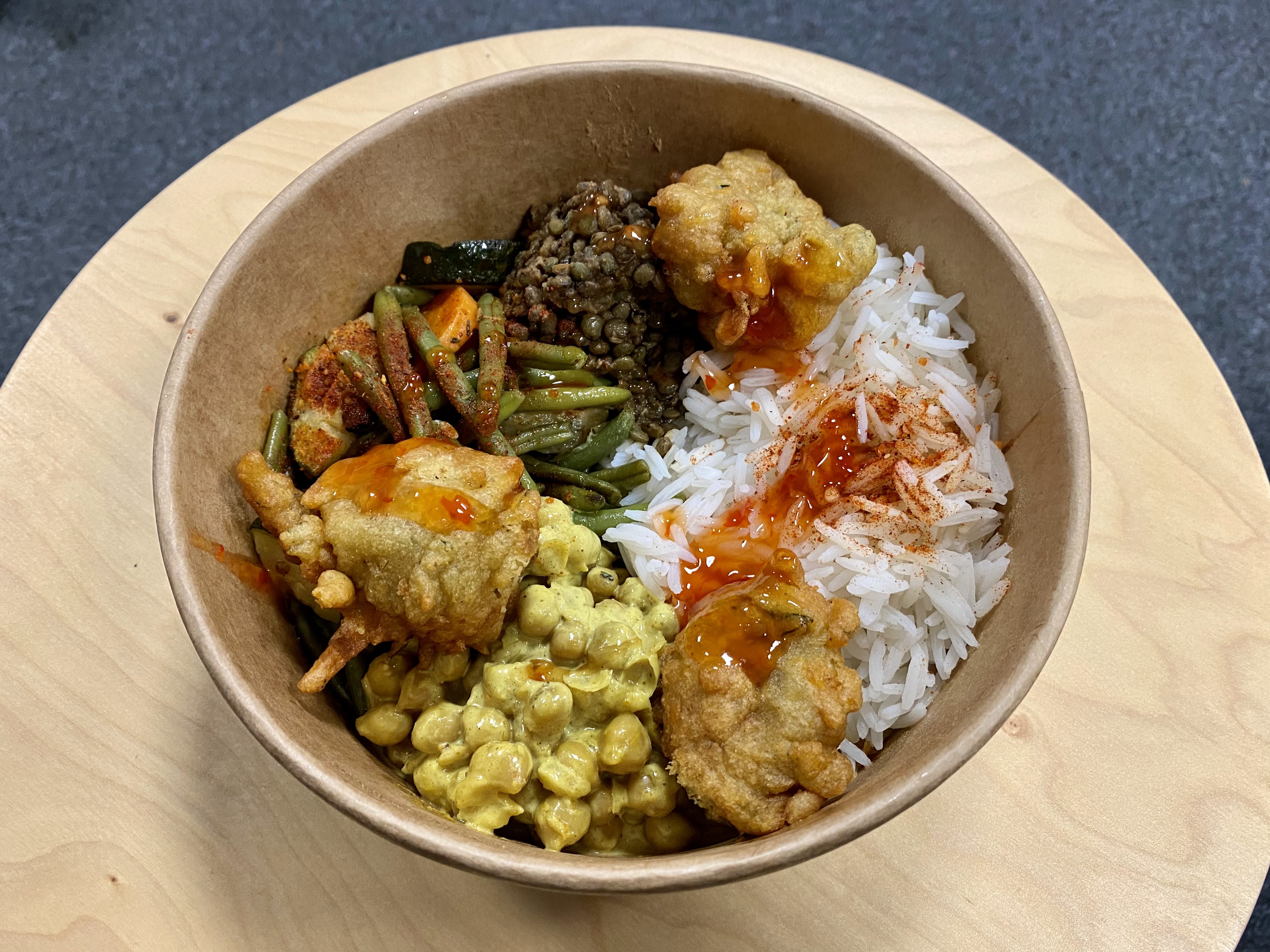 Clairement le meilleur choix a emporter autour de Henri Fréville. Les plats maisons changent chaque jour, avec des influences multiples mais toujours savoureuses et épicées. Le tonkatsu et le Buddha bowl étaient très bien. Le service est très sympathique et plutôt rapide.
