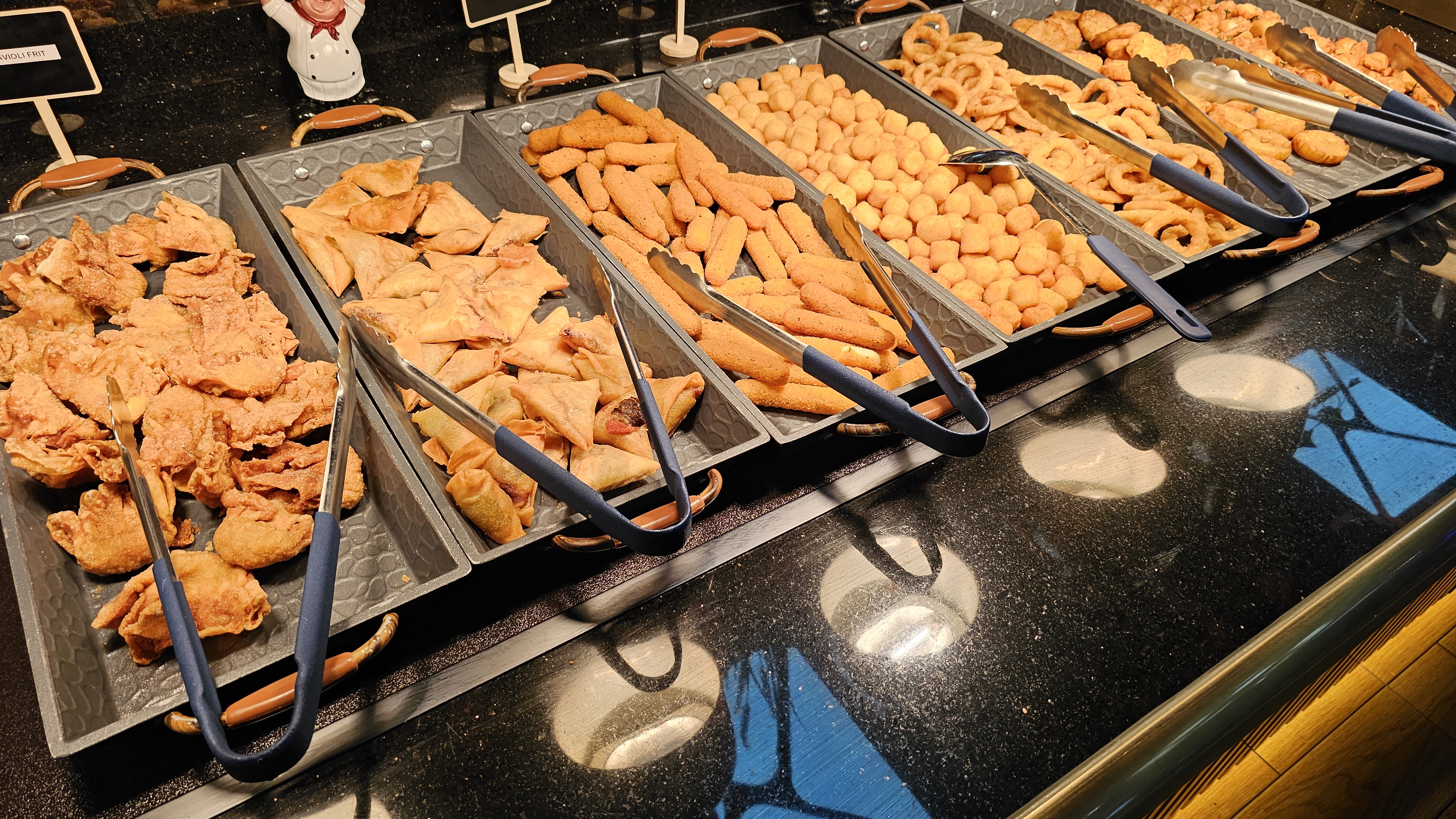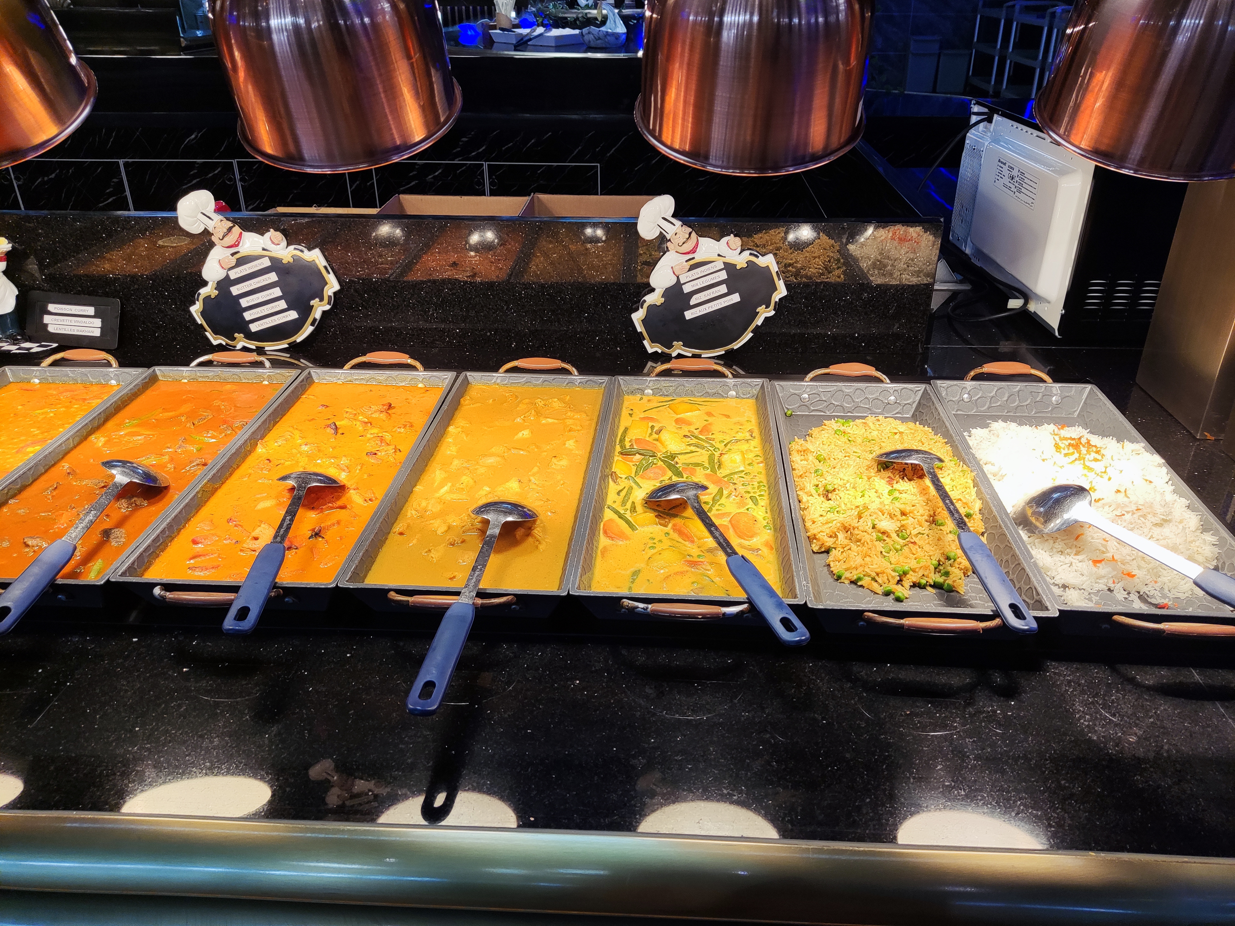 Très large choix dans les buffets Il y a même de la cuisine indienne, fruits de mer, gâteaux, etc...