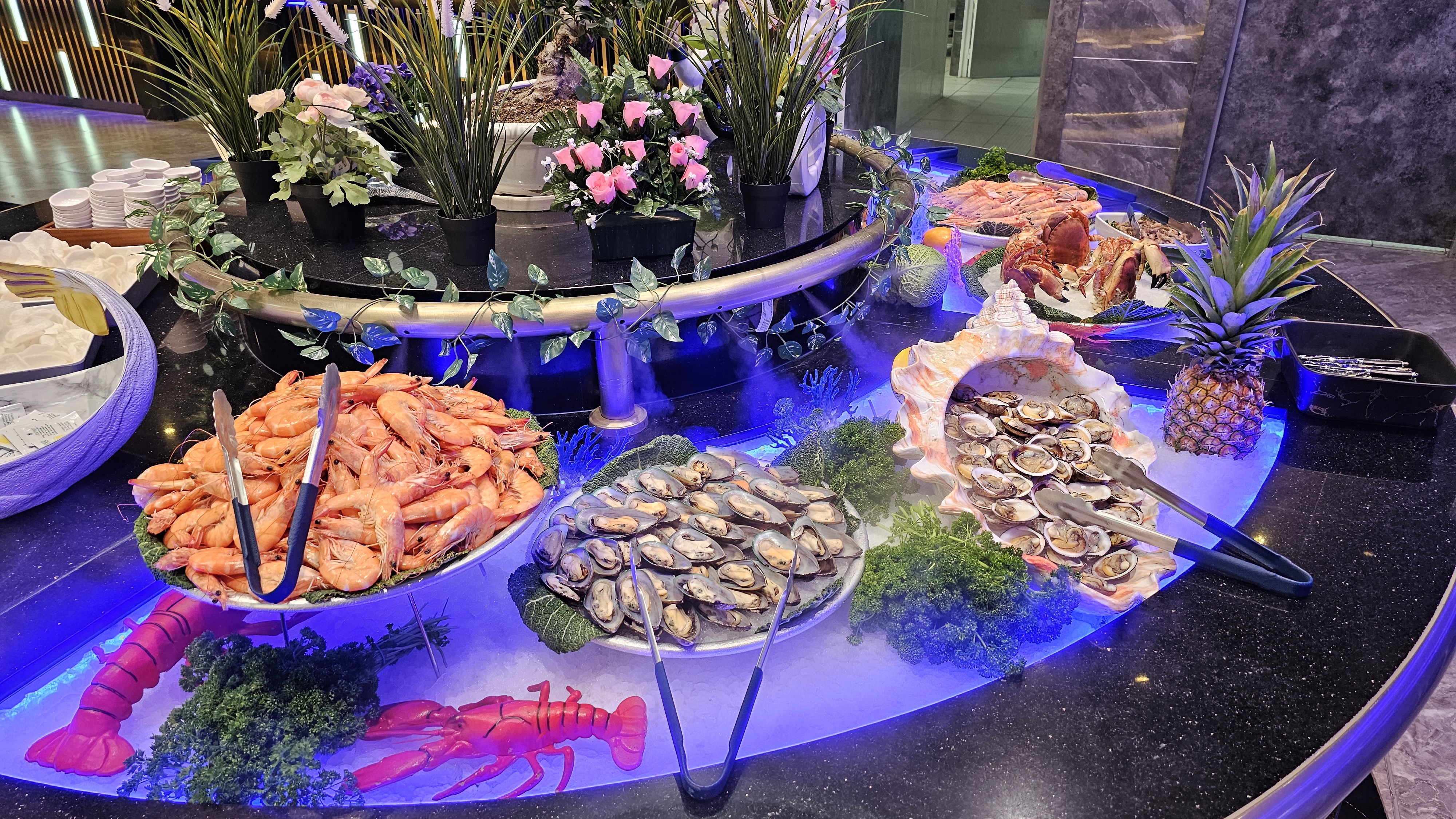 Wahou ! Je n'ai jamais vu un buffet aussi grand et avec autant de choix ! Incroyable ! Très frais, réapprovisionné souvent et bon. Je recommande ! Attention toutefois à la propreté des toilettes
