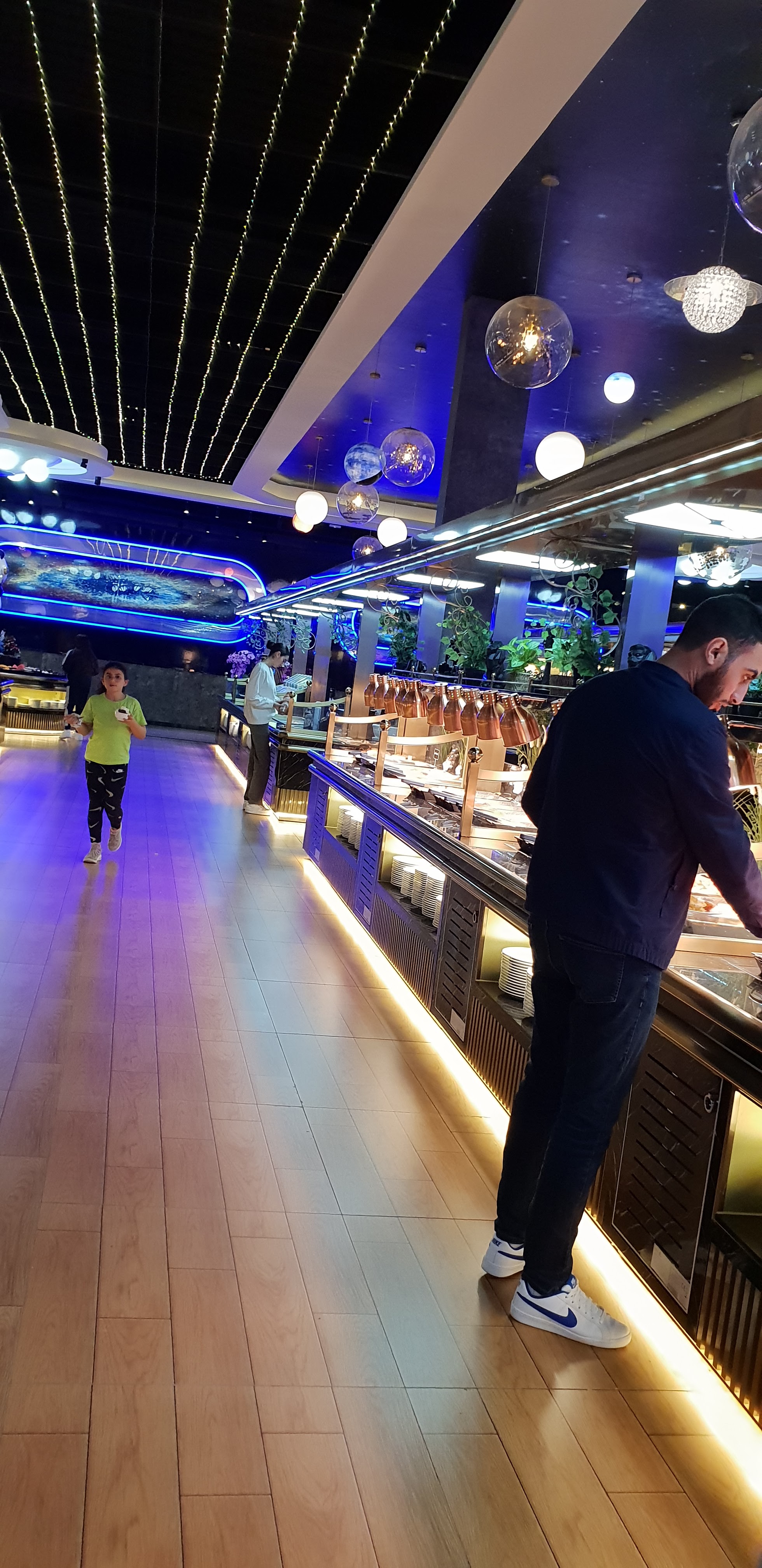 Personnel très aimable et aux petits soins. Nous sommes venus avec un bébé et chaque employé qui passait nous proposait une chaise haute et nous demandais si l’on avait besoin de quelque chose. Buffet bien garni et produits de très bonne qualité! Petits plus : viande halal et magnifique deco dans le thème « spatial ». Bravo planet panda