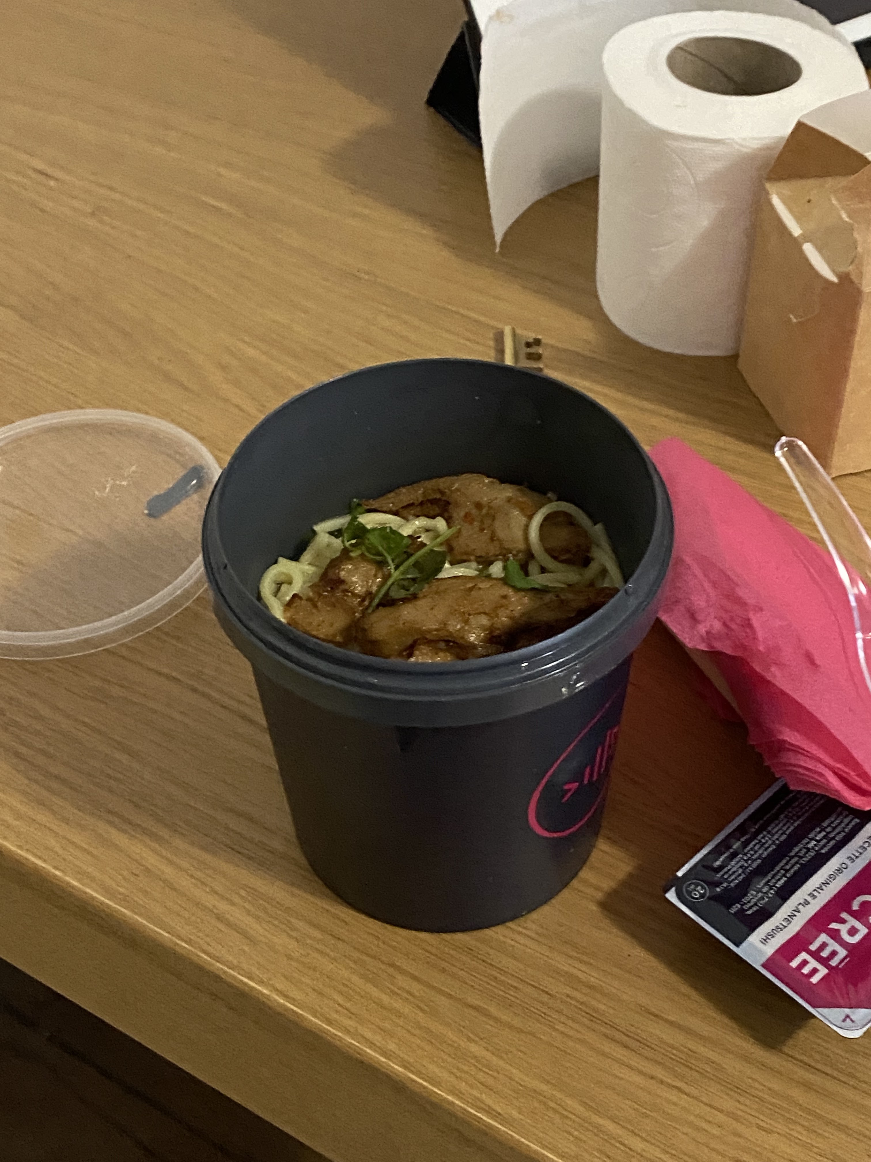 Commande de ramen veggie par just eat. Plat insipide ne correspondant pas du tout à l'image et avec un bouillon pas bon. Des légumes inexistants. Ça ne valait pas le prix demandé et nous ne conseillons pas ce plat.