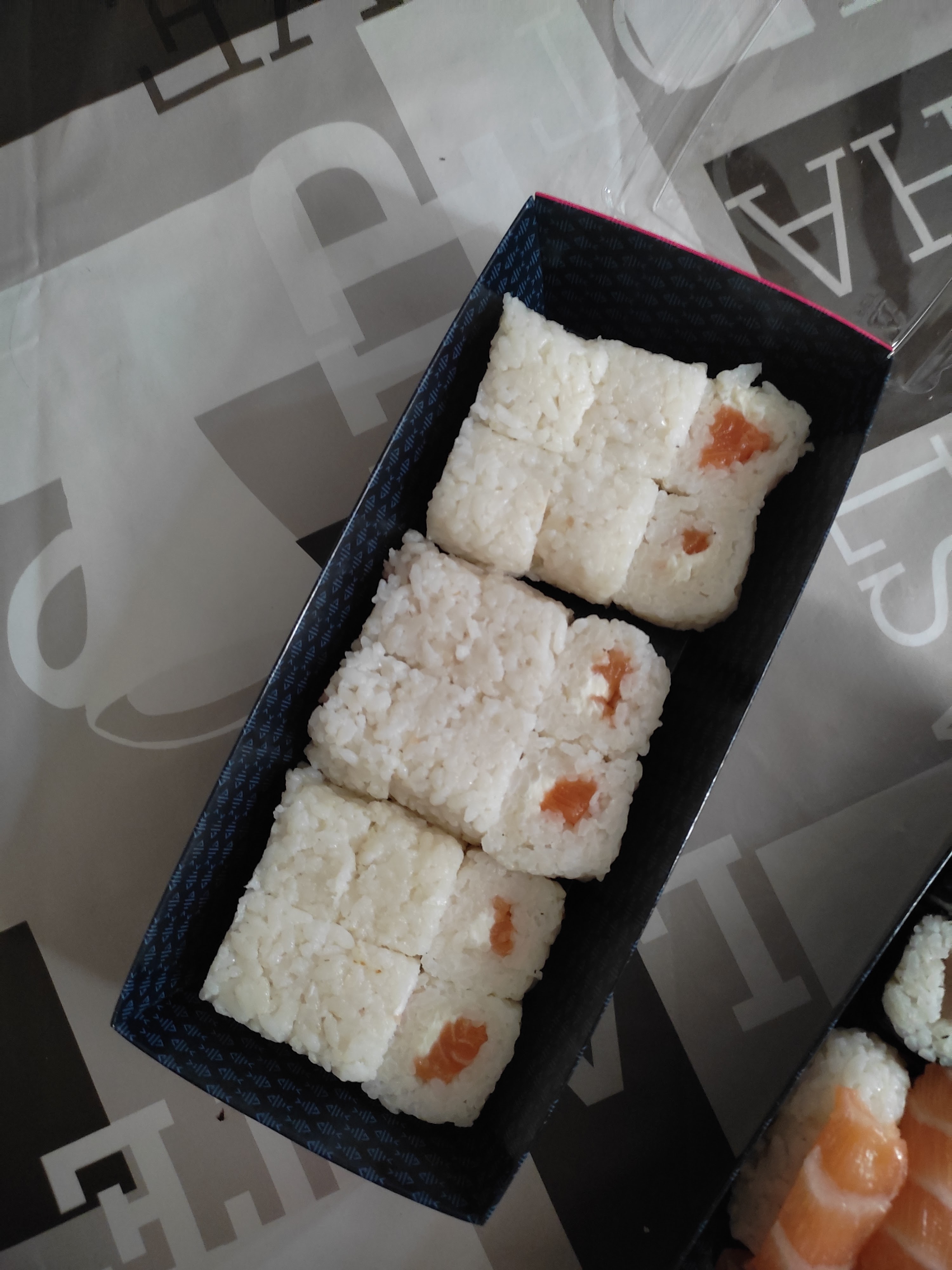 Sushi pas terrible, le saumon est juste posé sur le riz, qui n'est pas assaisonné, tout se désagrège lors de la dégustation. Pas de wasabi fourni en livraison.