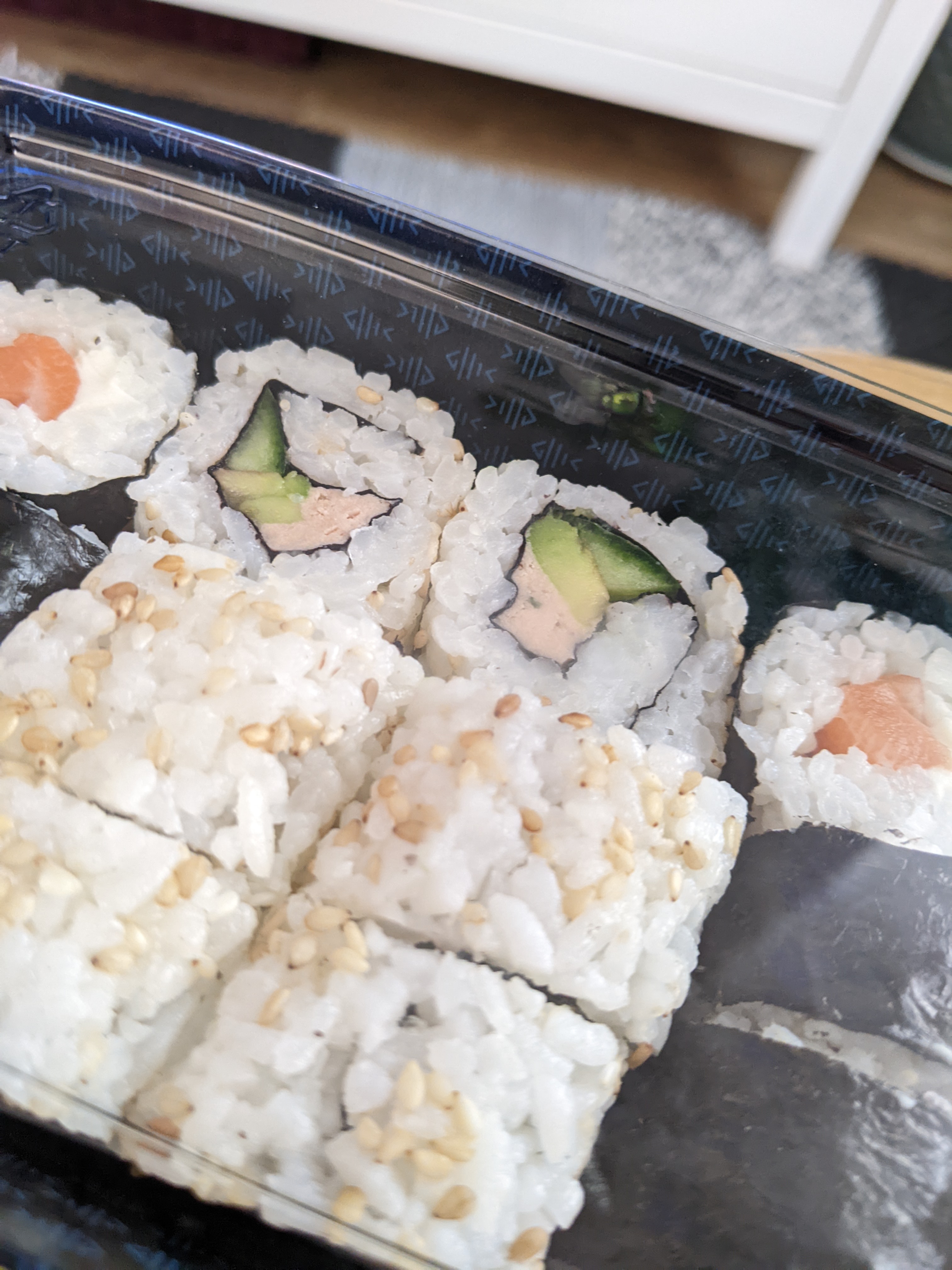 On a pris un panier Too Good To Go, mon conjoint est malade comme un chien après avoir mangé le thon. Les sushis ont des goûts vraiment bizarres, bref, plus jamais !