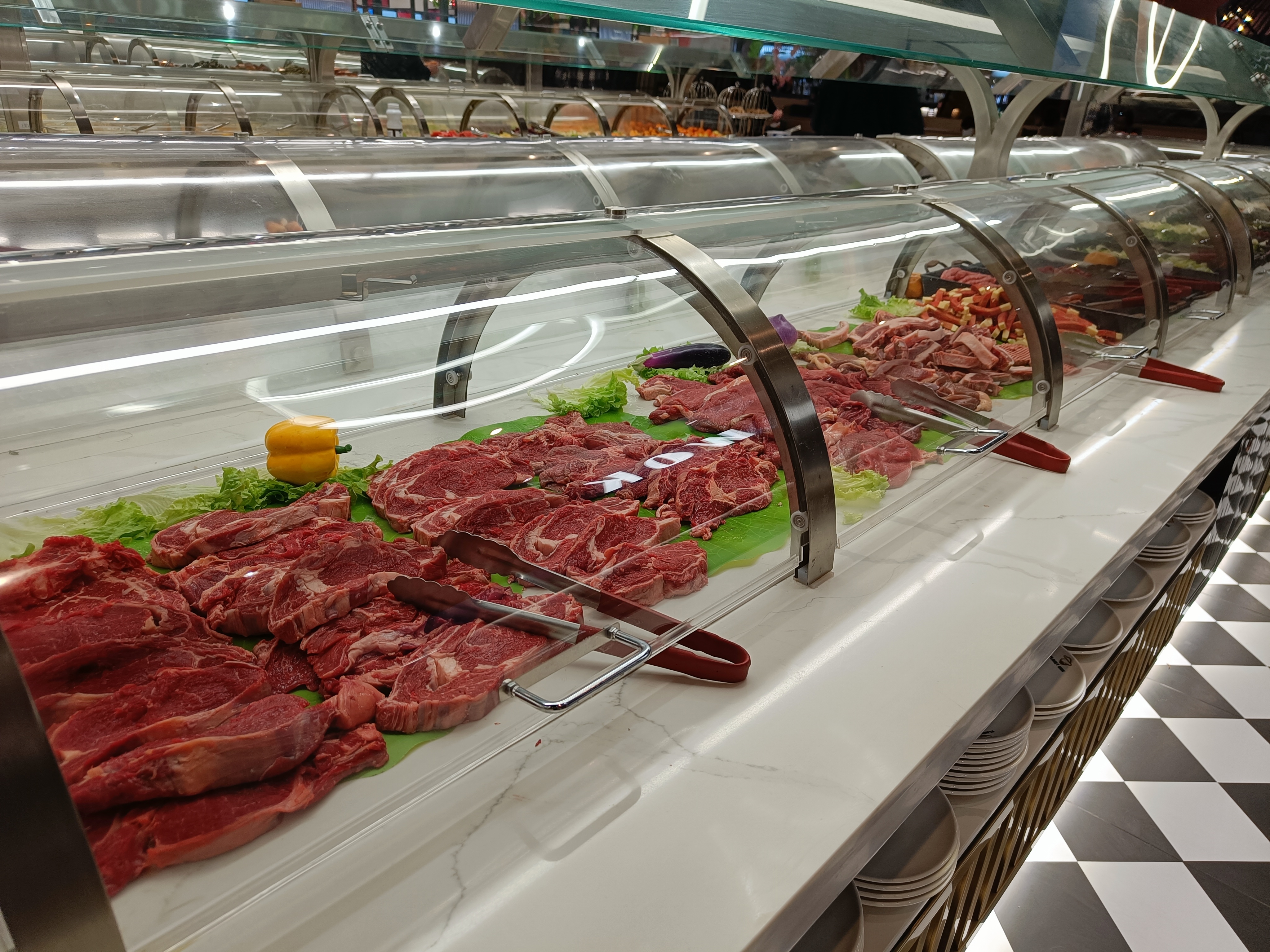 A EVITER !!!! risque d’intoxication alimentaire. 1er fois que j'y vais, je me suis dit aller on va tester. Ma 1ère impression global : c’est immense, et beaucoup, beaucoup de choix. Ensuite, je regarde de plus près : la charcuterie était chaude, elle dégoulinée de gras. Ensuite, le fromage était MOISI !! Les fromages était gris par la moisissure. On informe, une des serveuse du jour, de ce que l’on a vu. Elle gobé les mouches et comprenait à peine ce que l’on disait ou alors faisait semblant de comprendre. Les fruits de mer, n’en parlons même pas, il n’y avait une vieille odeur de pas frais Le présentoir a viande est dégueulasse !! et je pèse mes mots, tout le monde se sert n’importe comment, la tranche d’agneau qui touche les tranches de canard. Au lieu de les mettre dans un plat à Inox, il laisse sa, étaler sur le présentoirs en vrac, comme si, il donner à manger à des chiens. Il n’y a pas assez le pince pour se servir, j’ai vu des personnes toucher la viande avec leur main ✋️. Les présentoirs sont surcharger de nourriture pour éviter de refaire le stock trop souvent au lieu d’en remettre petit à petit, et que le sur-stock reste au frais. Les dessert surtout les gâteaux, sont très beaux visuellement mais totalement insipide, ils sont fade. L’hygiène et l’organisation des présentoirs est sérieusement à revoir. Le prix est EXORBITANT (26€ un samedi soir) pour la qualité....je n’y reviendrais jamais. Et une petite visite de l’inspecteur de l’hygiène serai la bienvenue car le risque d’intoxication est très présent.