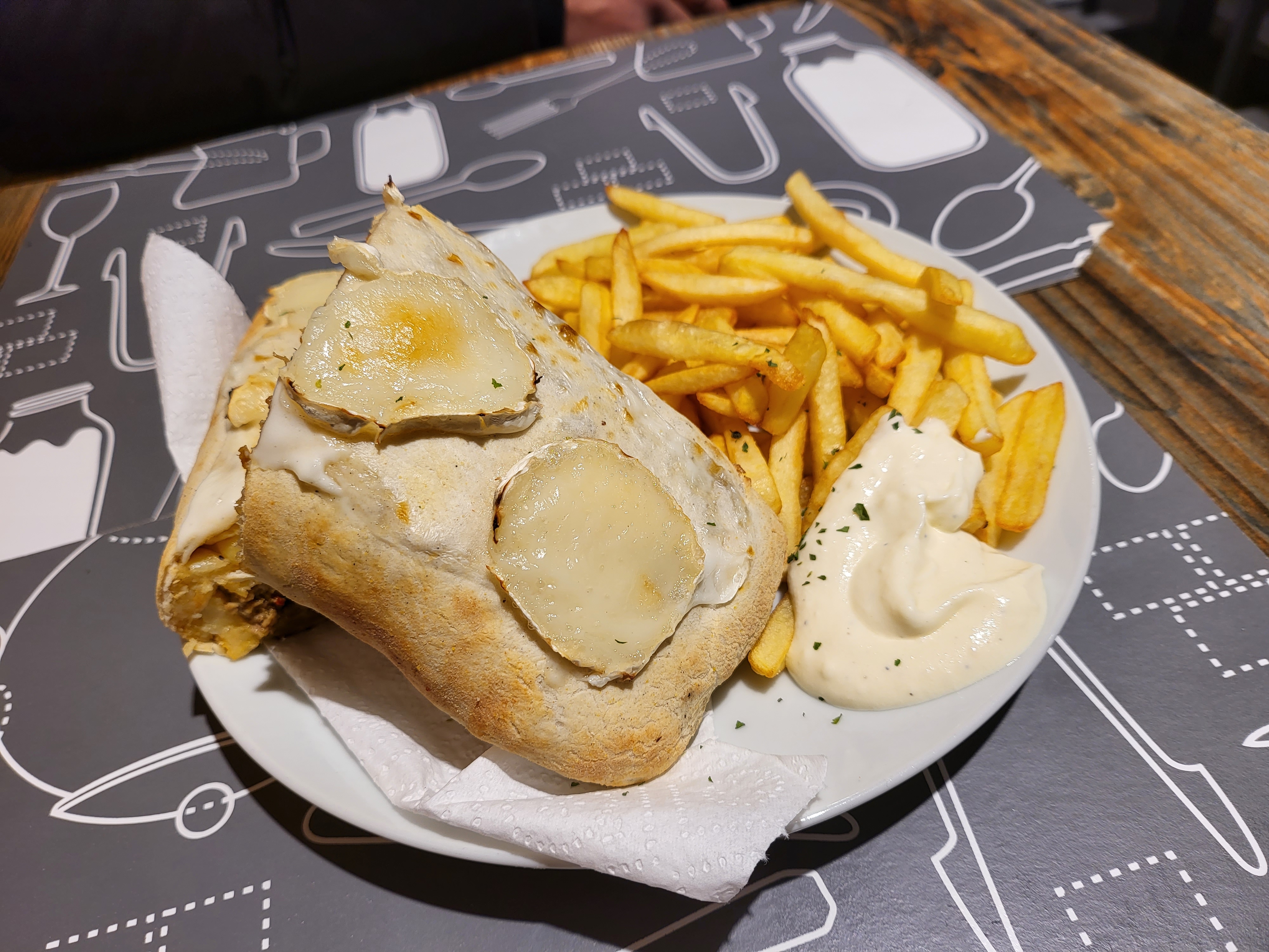 Un repas vraiment exellent avec un très bon service, une bonne ambiance et un très bon choix de boisson. On peut manger en intérieur ou en extérieur, il y a des toilettes et une télé si l'on mange à l'intérieur. Pour ma pare j'ai pris un sandwich orientale qui était vraiment exellent avec une cuisson parfaite ainsi que des frites qui était succulentes vraiment j'ai jamais mangé d'aussi bonne frites. C'est un lieu que je vous recommande fortement. 10/10😁