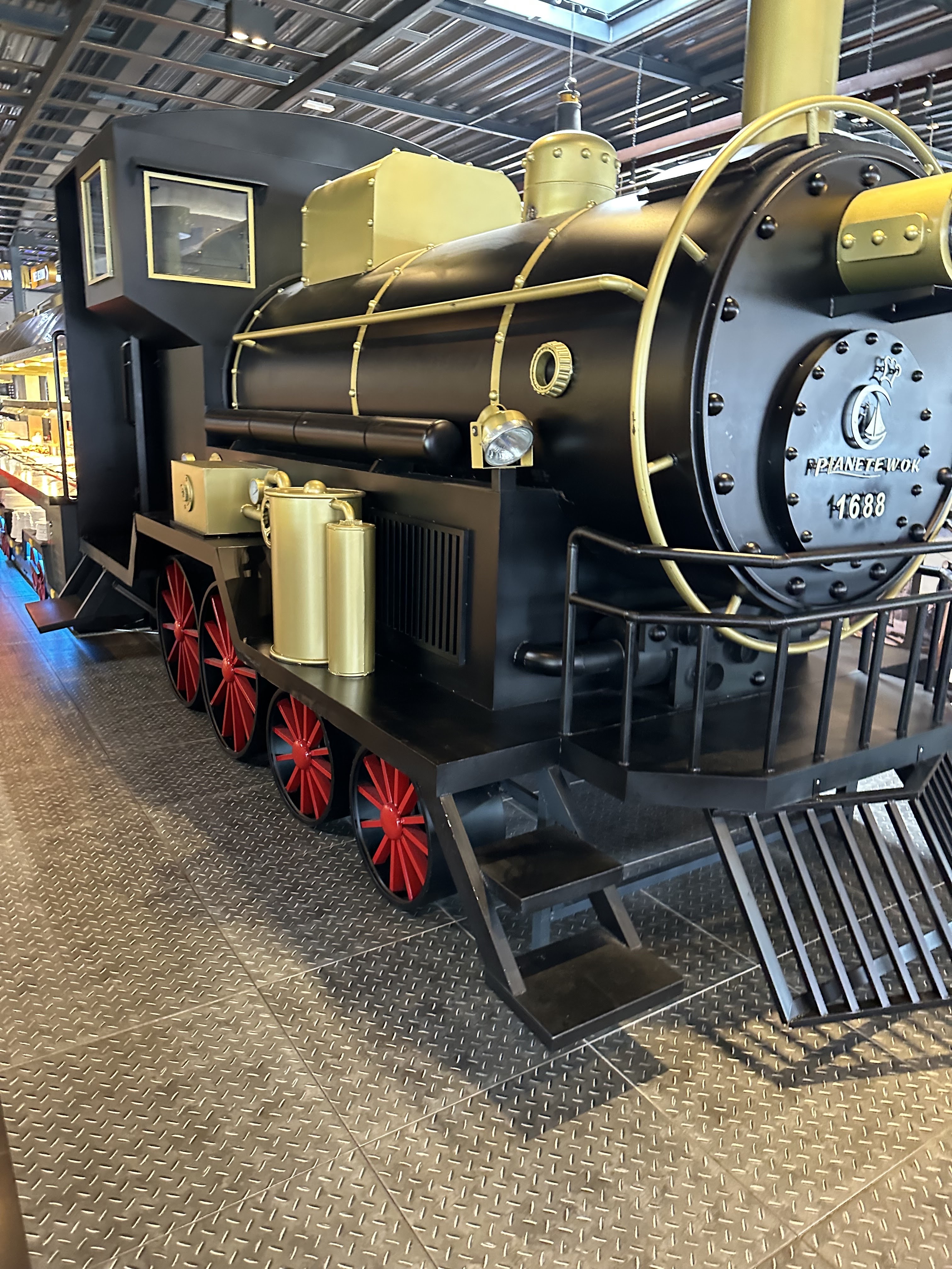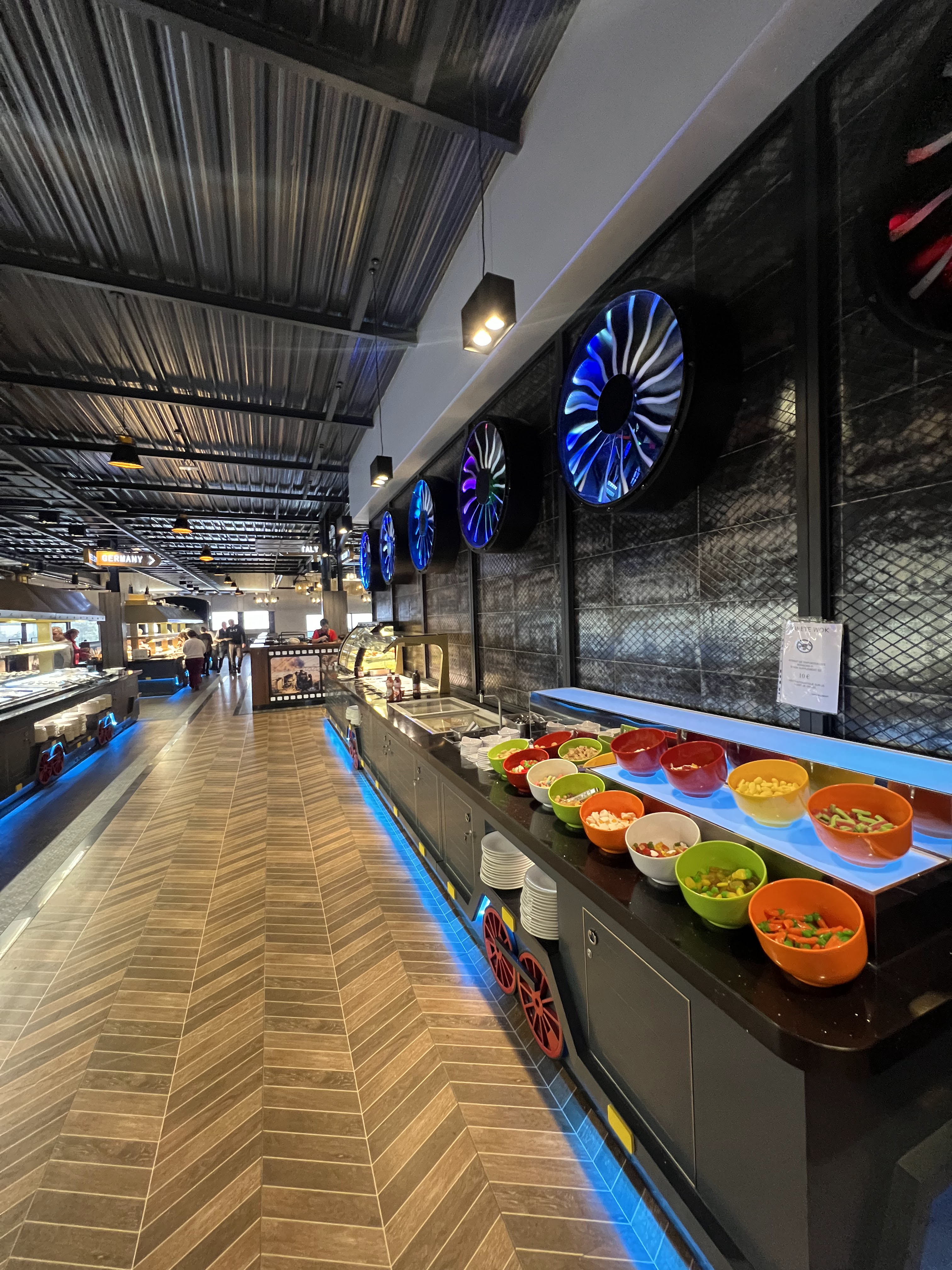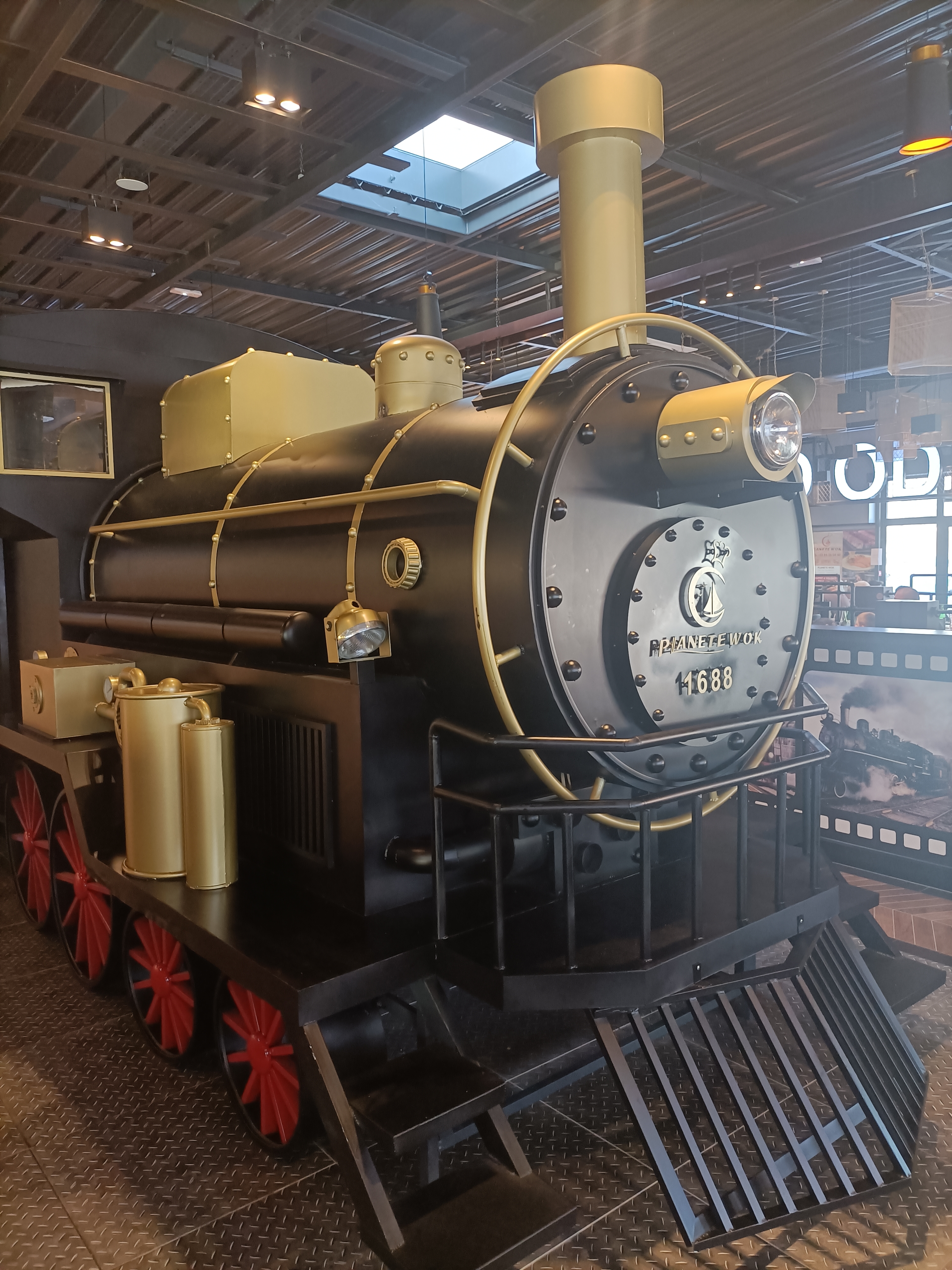 Lieu magnifique pour les yeux ! Aussi bien pour les grands que pour les petits. D'ailleurs un espace de jeux leur ai même dédié (pour les petits...) Côté cuisine, le choix est immense ! Et avec bien sûr un espace wok pour ceux qui ne trouveraient pas leur bonheur dans les plats proposés ou bien pour ceux qui auraient encore de la place après avoir fait le tour de toutes les suggestions proposées. 🤪 Le détail de la déco sur le thème du train est impressionnant ! Même les toilettes valent le détour ! Seul inconvénient, vue l'immensité du lieu, c'est le bruit mais vous aurez vite oublié ce détail tant le lieu est atypique ! À faire en famille ou entre amis et avec les enfants bien sûr...😉