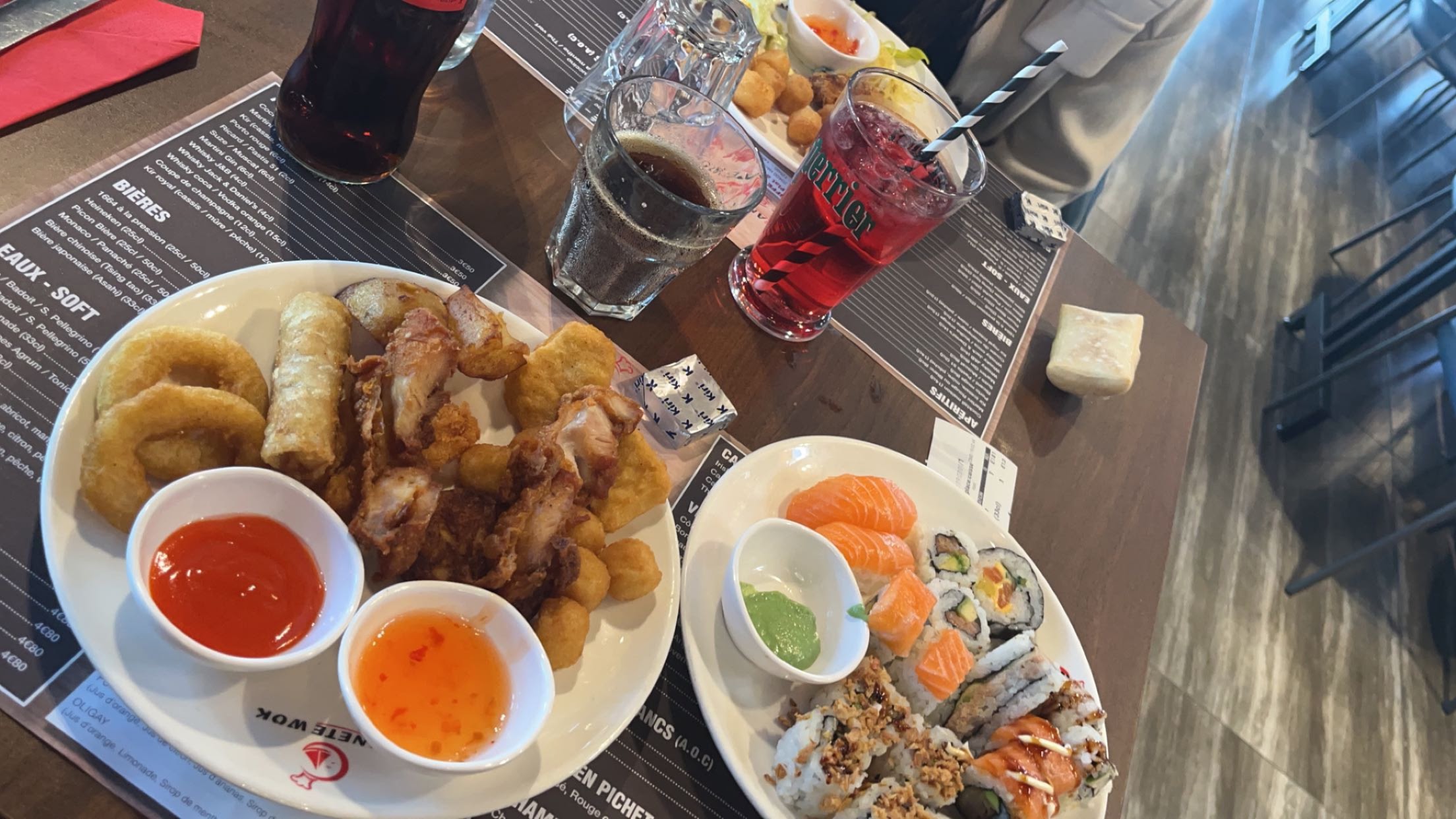 OK, mais sans plus, énormément de monde, beaucoup trop de place, les menus mais beaucoup trop cher, 1h d'attente pour le wok, frigo des suhis à 5,4 °C (au norme c'est +2/+4°C). Sushis 🍣 vide