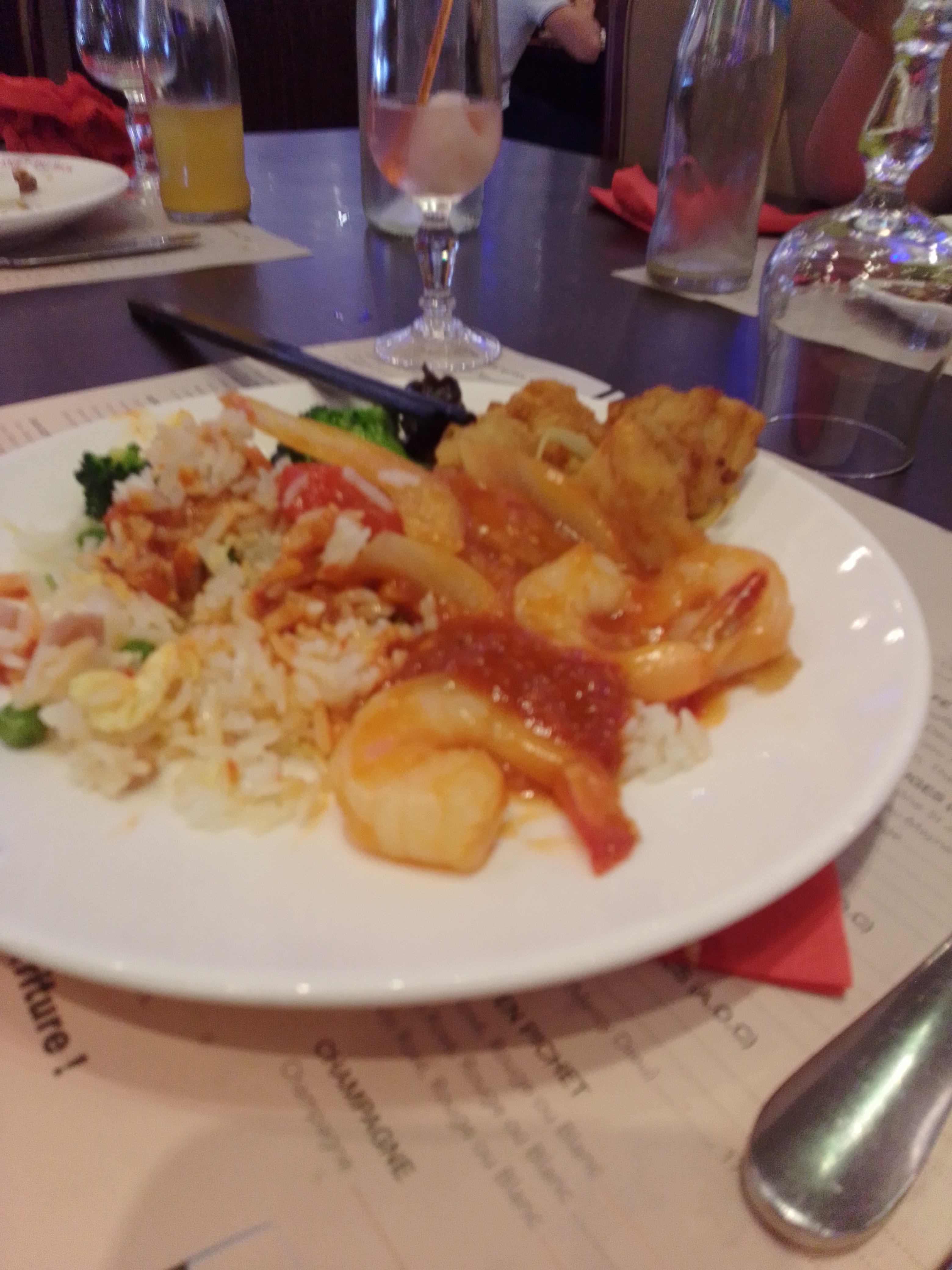 Cuisine chinoise adaptée à la française,(je dis ça parce que je suis marié à une chinoise) c'est bon, très beaux décors, belle salle
