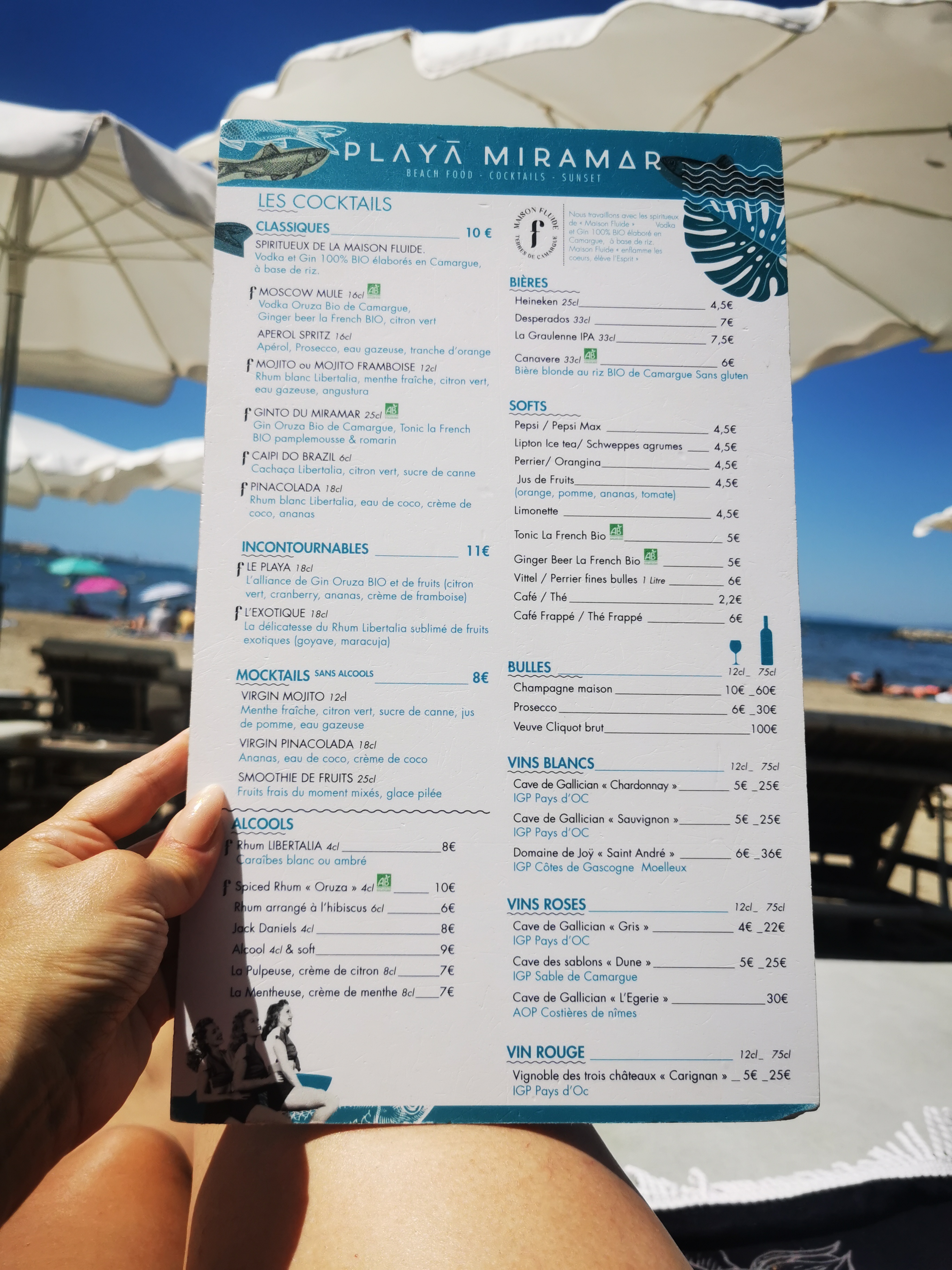 Journée parfaite à la Playa Miramar ! Personnel aux petits soins, propreté impeccable, une planche de fromage et de cochonaille succulente, accompagnée par un petit rosé des Dunes bien frais. Les prix sont ce qu'ils sont dans un haut lieu touristique.