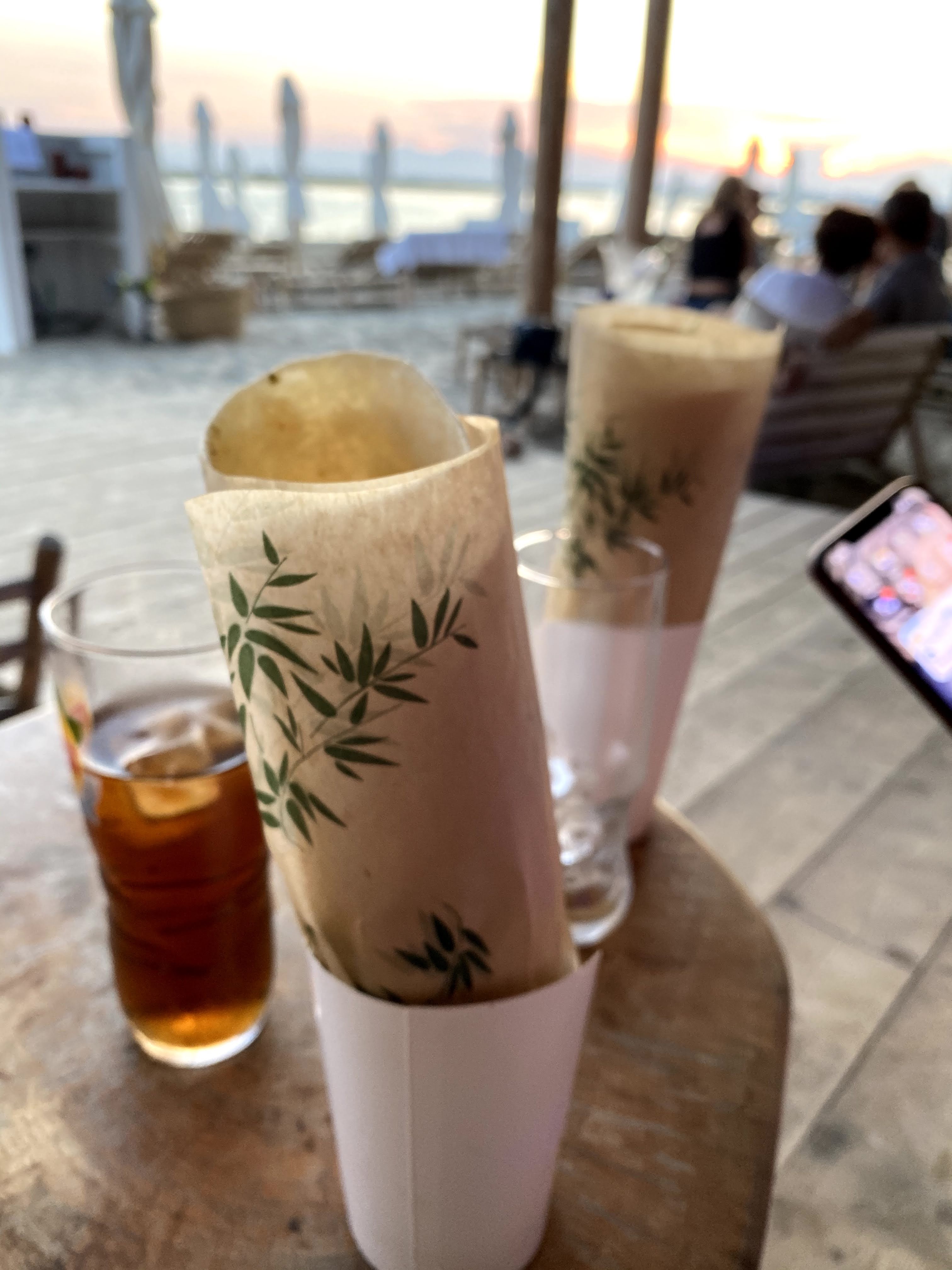 Nous avons réservé pour le repas de dimanche soir. Le cadre est très joli, nous mangeons les pieds dans le sable face à la mer. Cependant les plats servis dans des assiettes en carton, des couverts en bois laisse un goût de déception au vu des tarifs pratiqués. Il y a très peu de choix sur la carte. Un bel endroit pour passer la journée à la plage mais je déconseille pour un restaurant en amoureux.