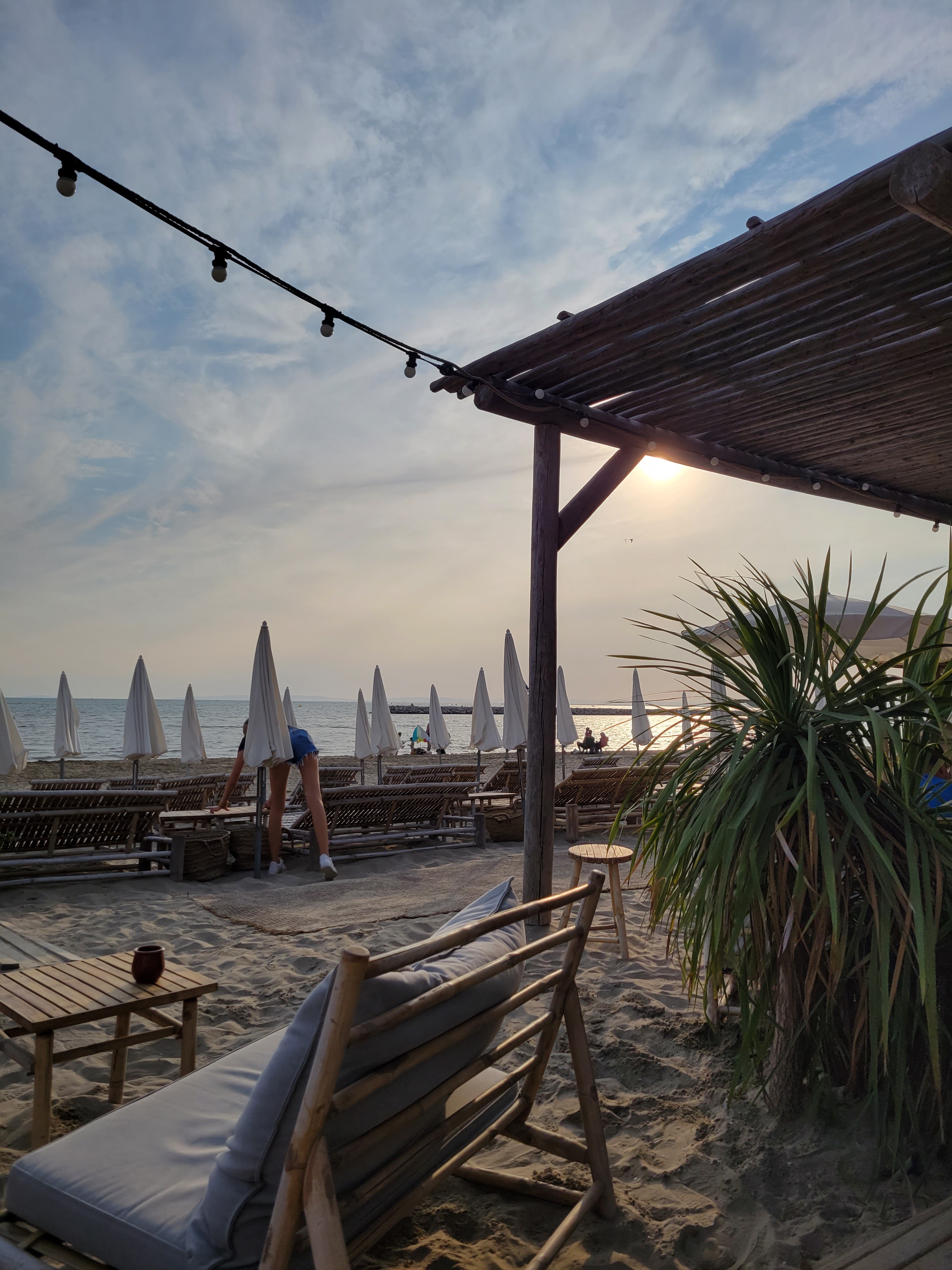 Jolie cadre vous n’êtes pas obligé de prendre un matelas asseyez vous sur les canapés proche du bar déguster un mojito les prix sont beaucoup plus acceptables que d’autre paillotes un petit dessert a tester venu de Suède l’acai bowl allongez vous déguster et admirer la vue